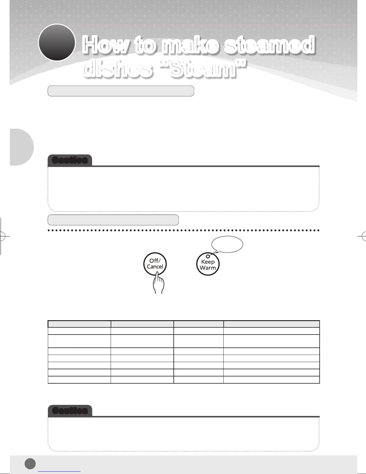 Take out the steamed dish soon after the steam cooking is nished. If you leave the dish on the cooking