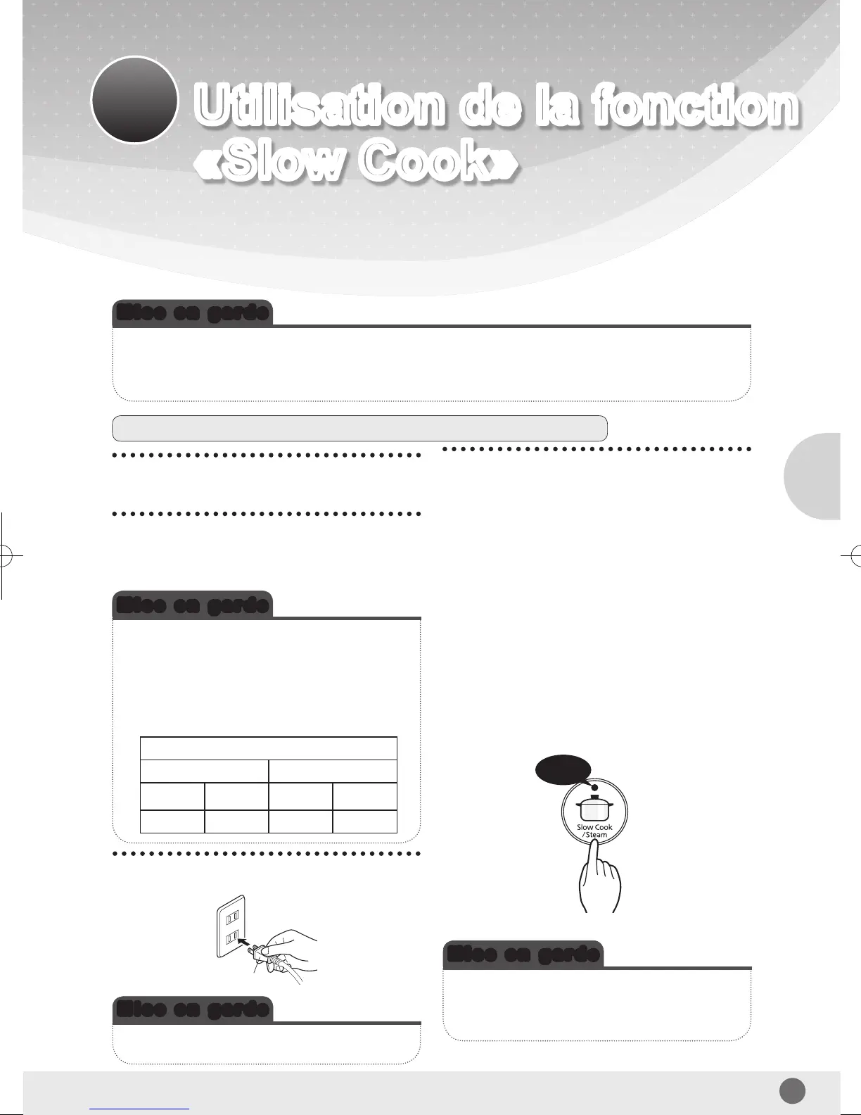cuisson, le témoin Slow Cook/Steam
