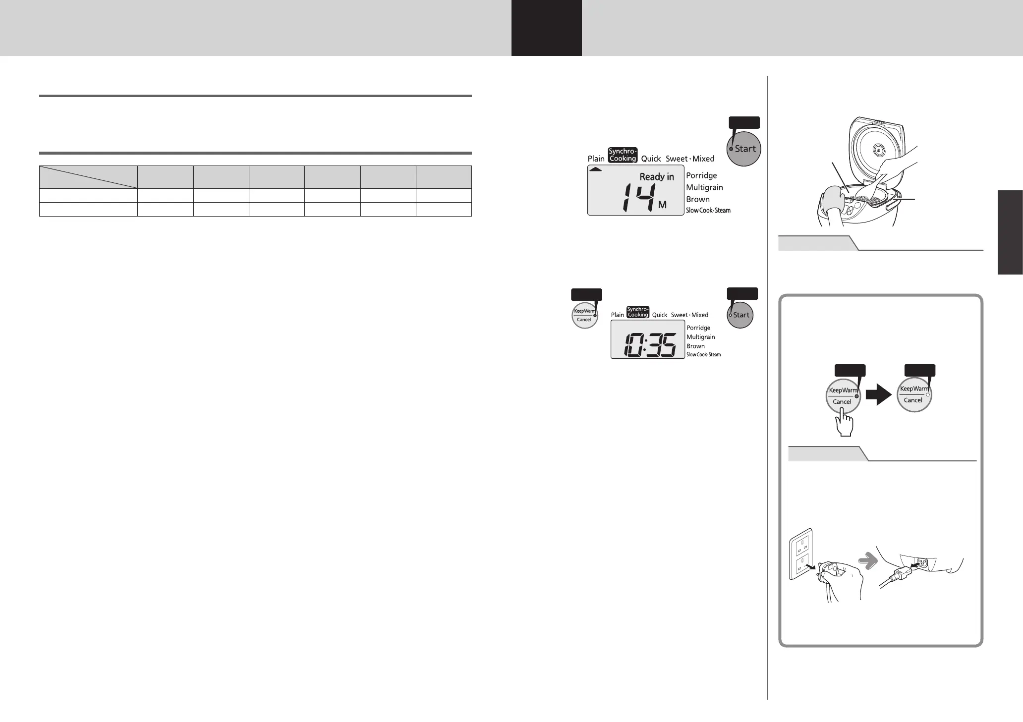 煮饭时间根据煮饭量、米的种类、配料种类及其量、室温、水温、水量、电压、预约时间等情况均有所不同。