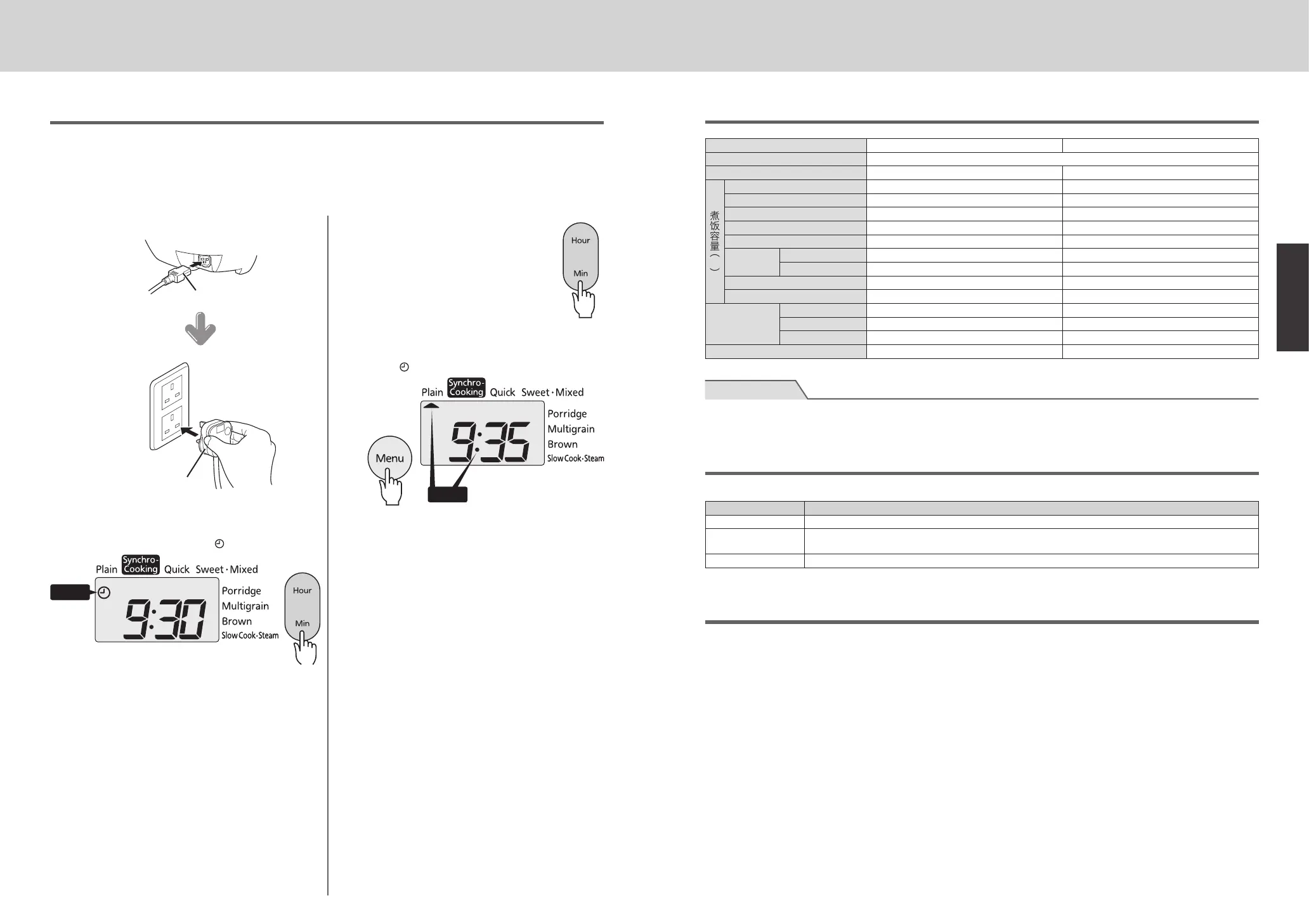 煮饭过程中、保温中、预约煮饭设定中与再加热中无法调整时间。