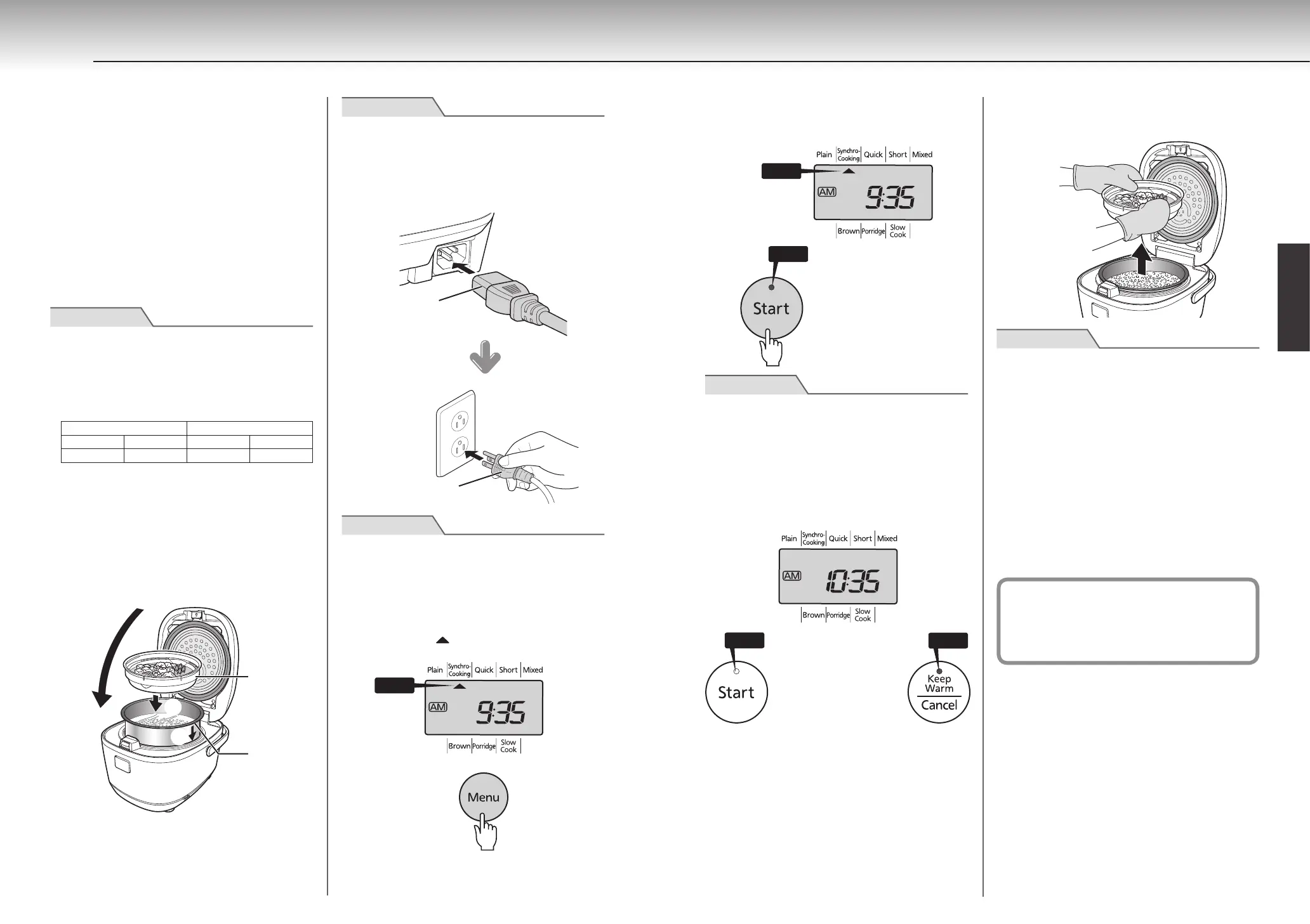 ● Ne laissez pas le plateau de cuisson dans le cuiseur