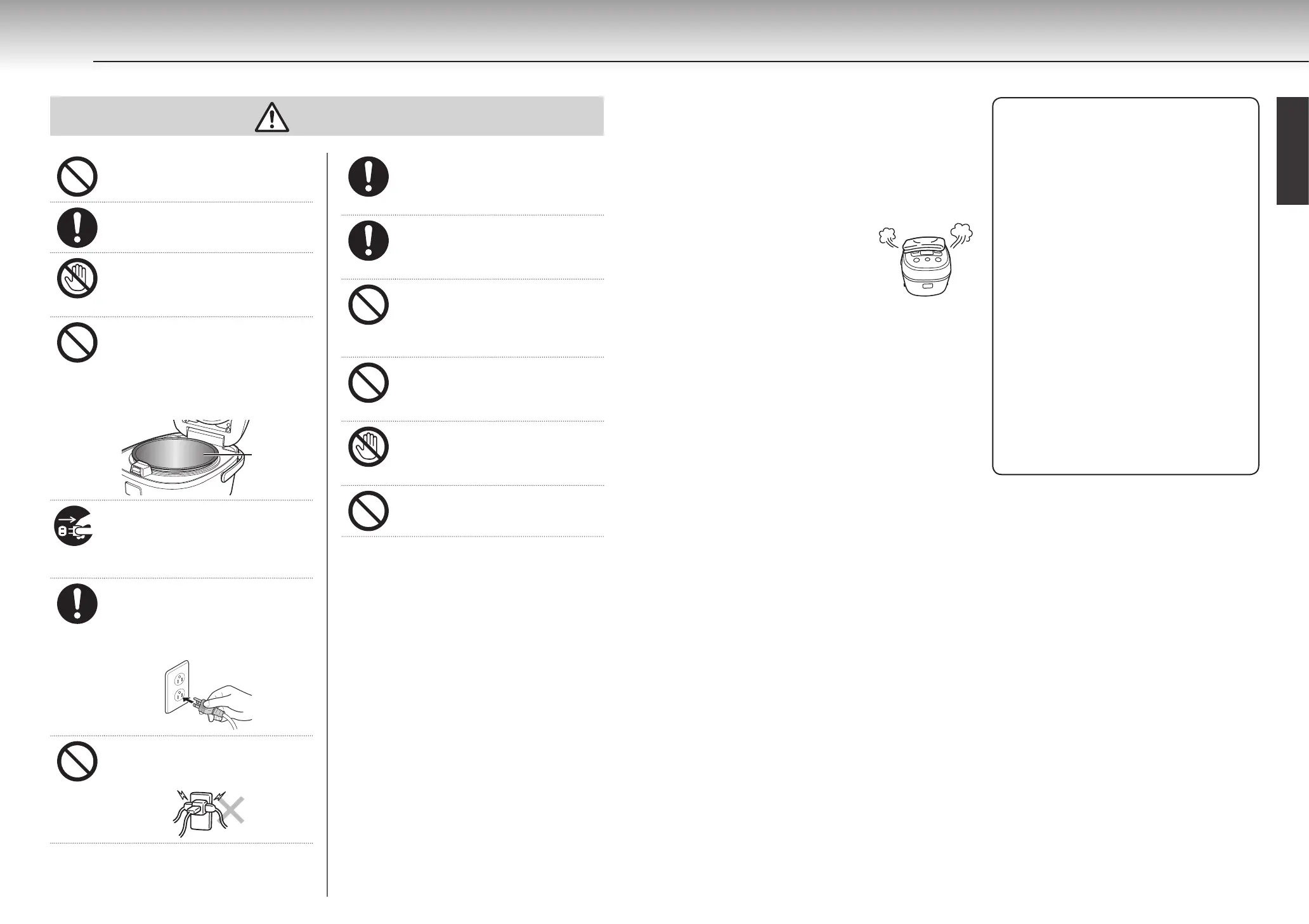 ● Do not cover the rice cooker