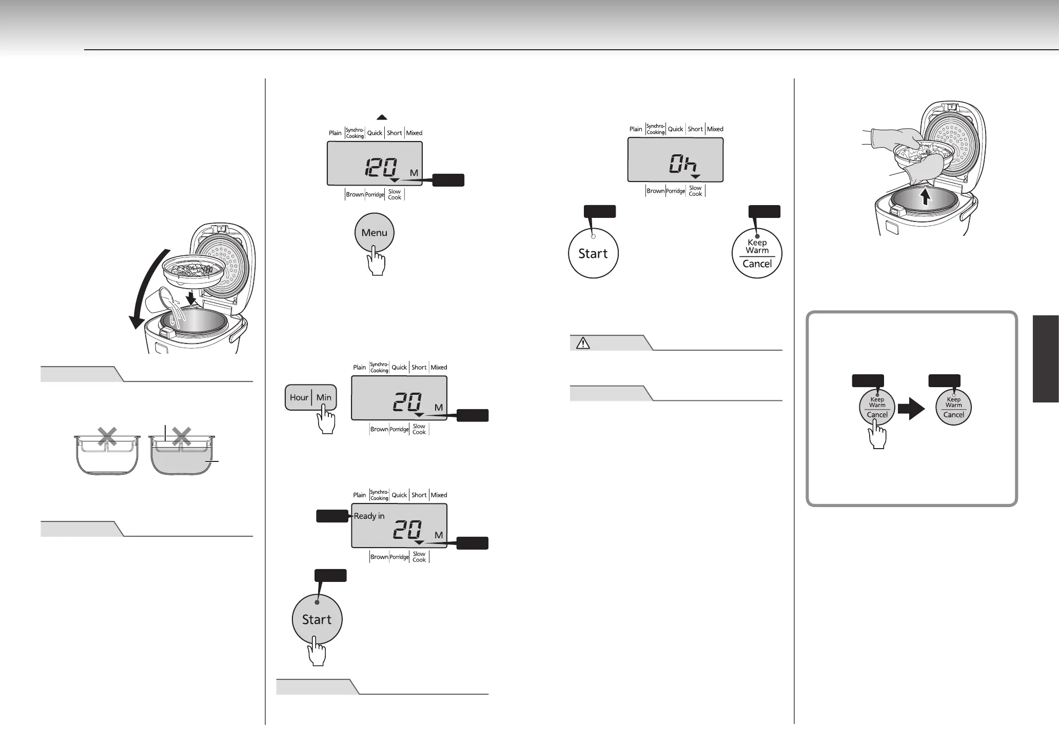保溫燈亮燈時,請按下[Keep Warm/Cancel]