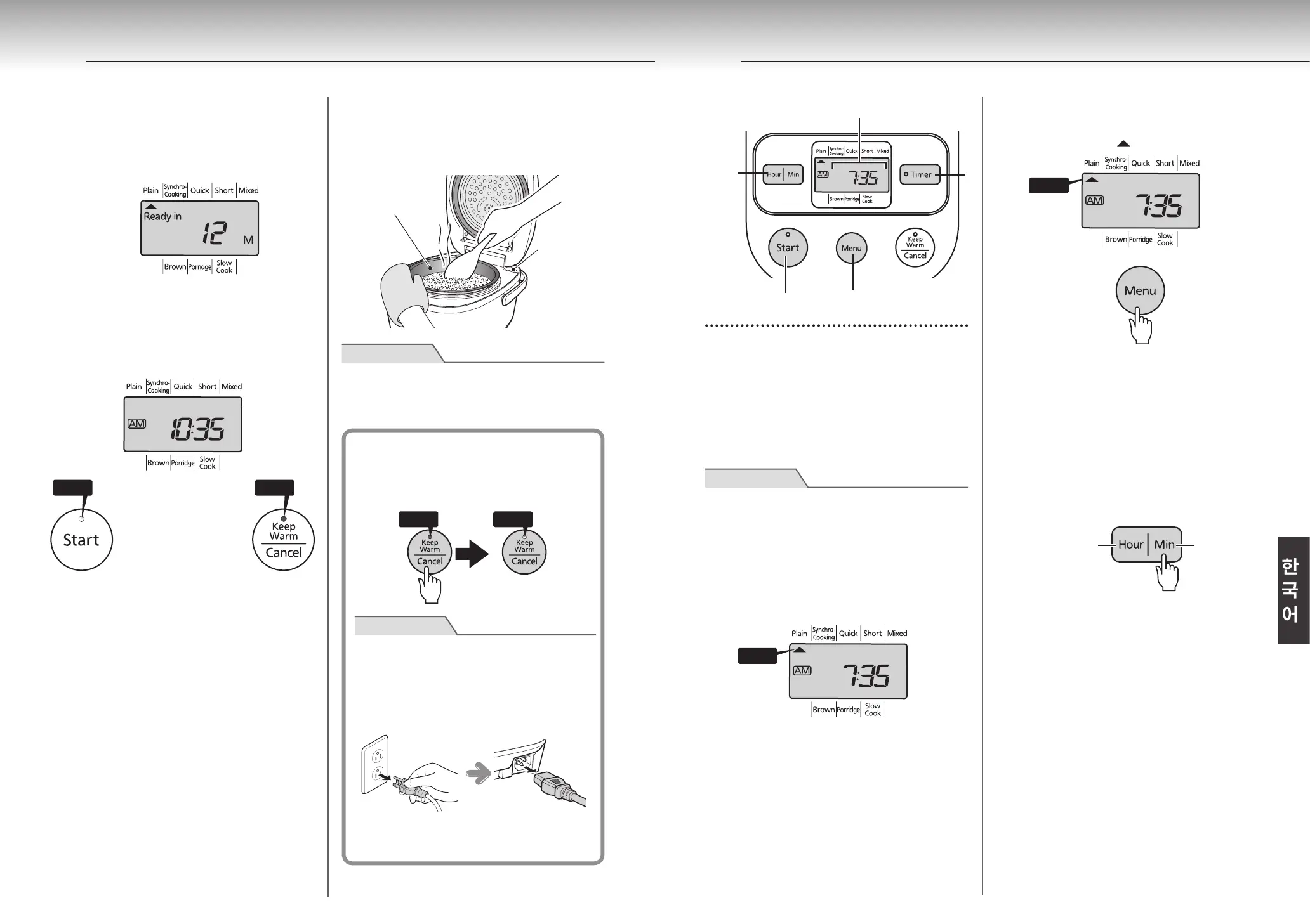 취사시간을 맞추고 [Start]버튼을