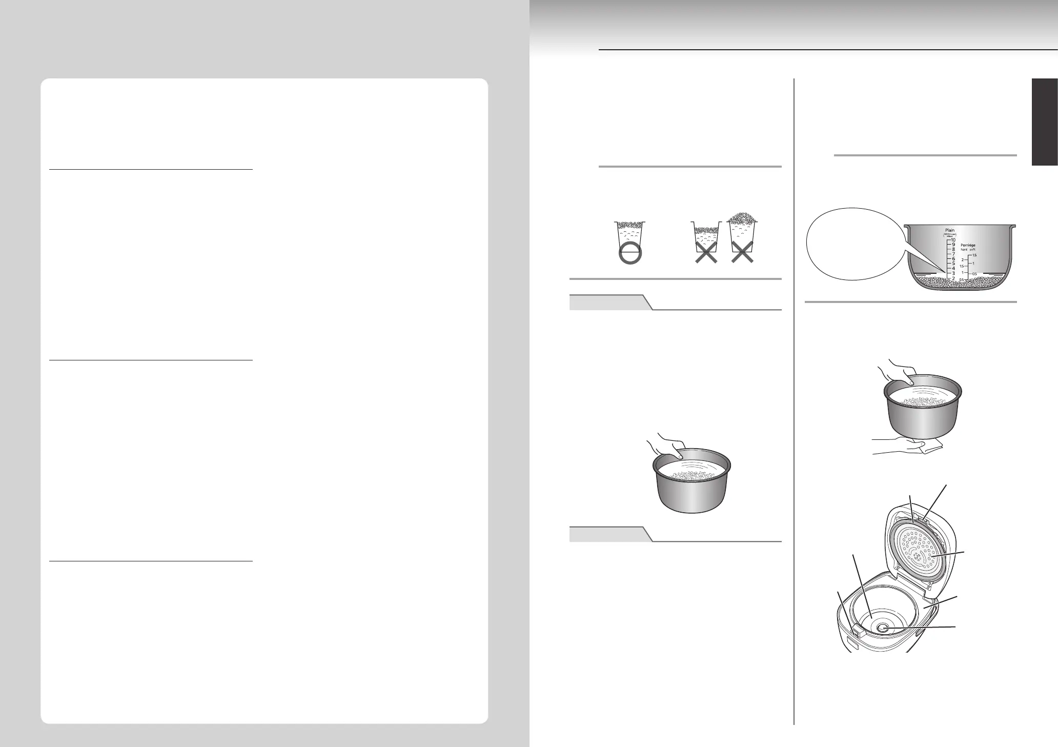 ● Use the supplied measuring cup for rinse-free rice