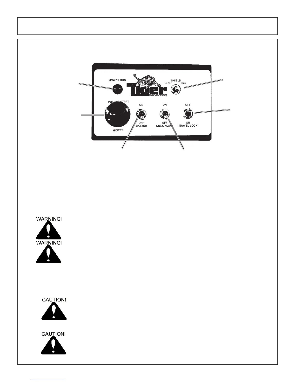 The Mower Control switch turns the mower “ON” and “OFF. This switch is to be
