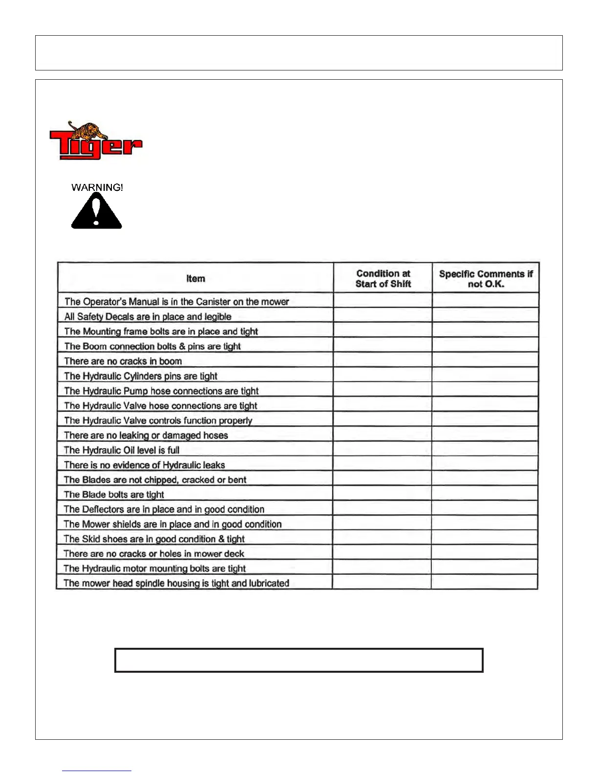 Before conducting the inspection, make sure the Tractor engine is off, all