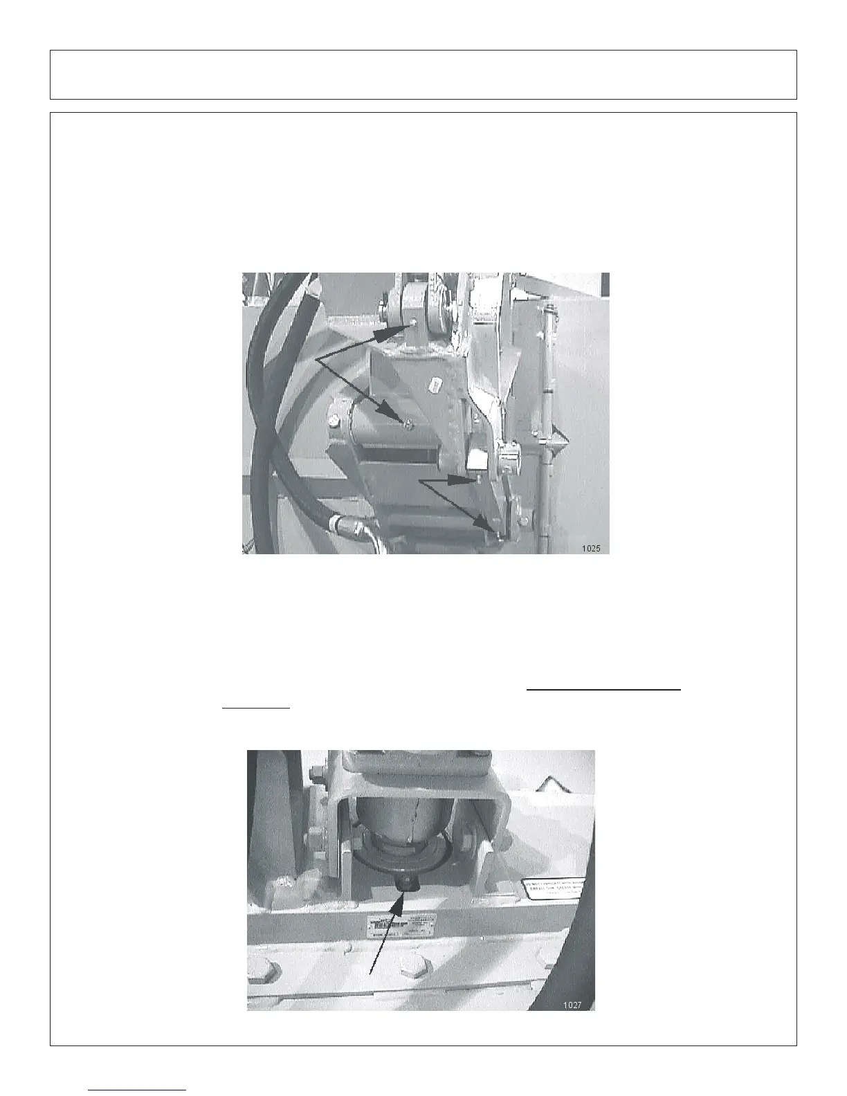 Locate grease zerks (8) on deck pivot assembly, (2) on deck end of secondary