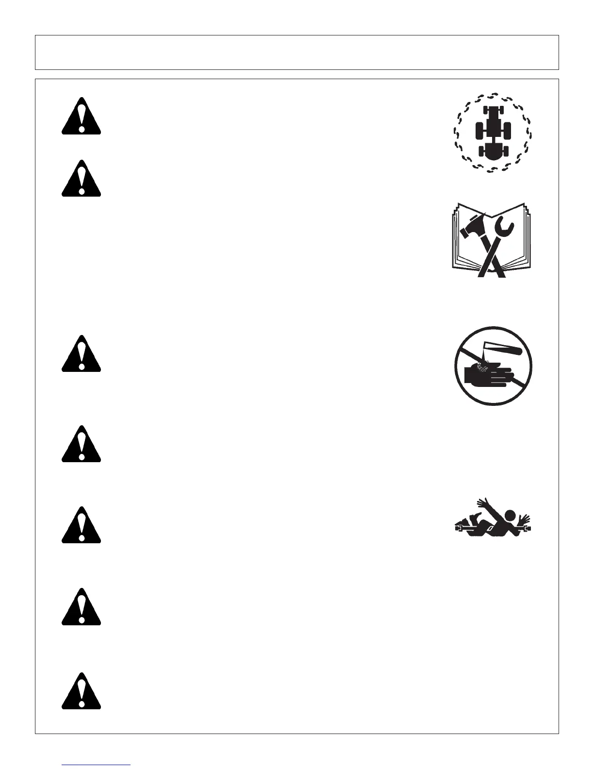 Implement while it is in motion or while tractor engine is running. Make