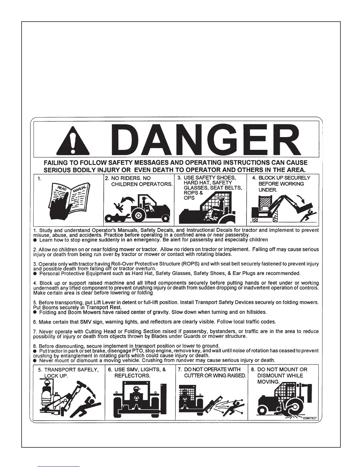 BEFORE YOU START!! Read the safety messages on the implement and shown in this manual.