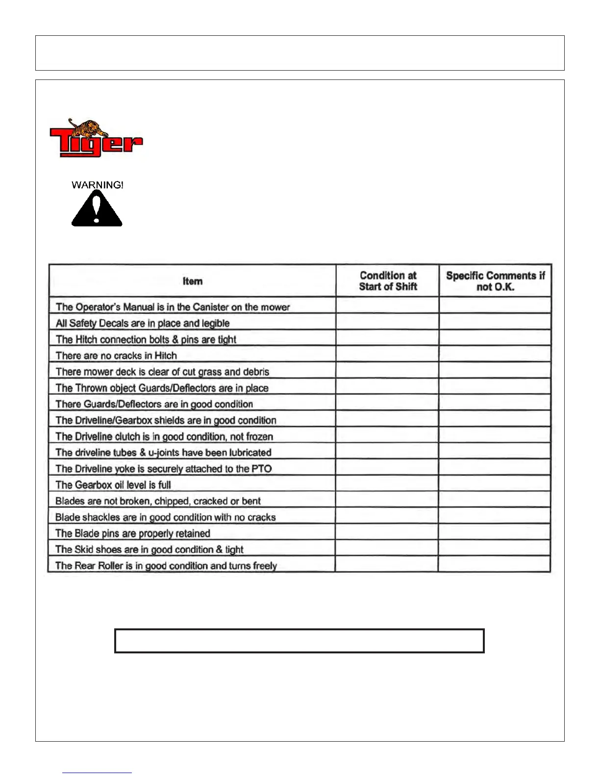 Before conducting the inspection, make sure the Tractor engine is off, all rotation