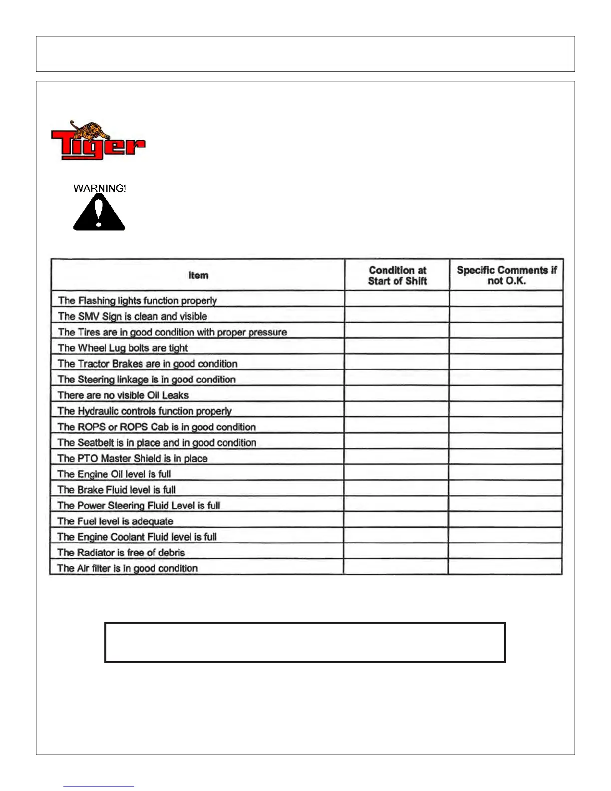 TRACTOR PRE-OPERATION Inspection