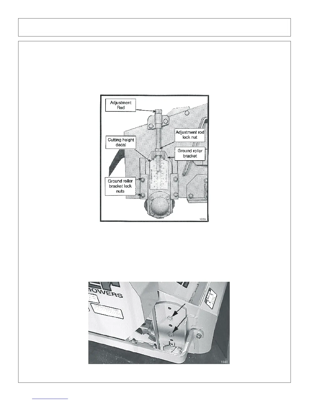Loosen the four ground roller bracket lock nuts. Loosen the adjustment rod lock