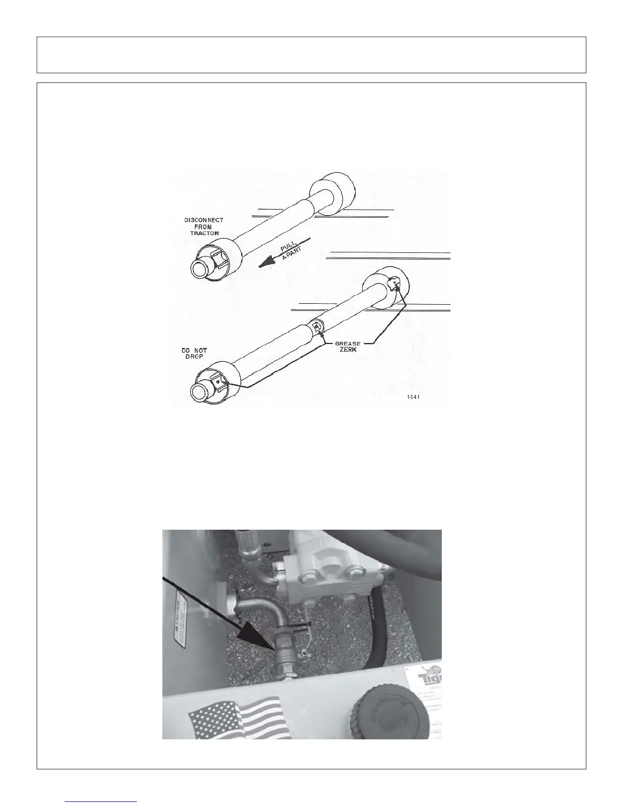 P.T.O. shaft from the tractor. Slide the shaft apart to expose the grease zerk.