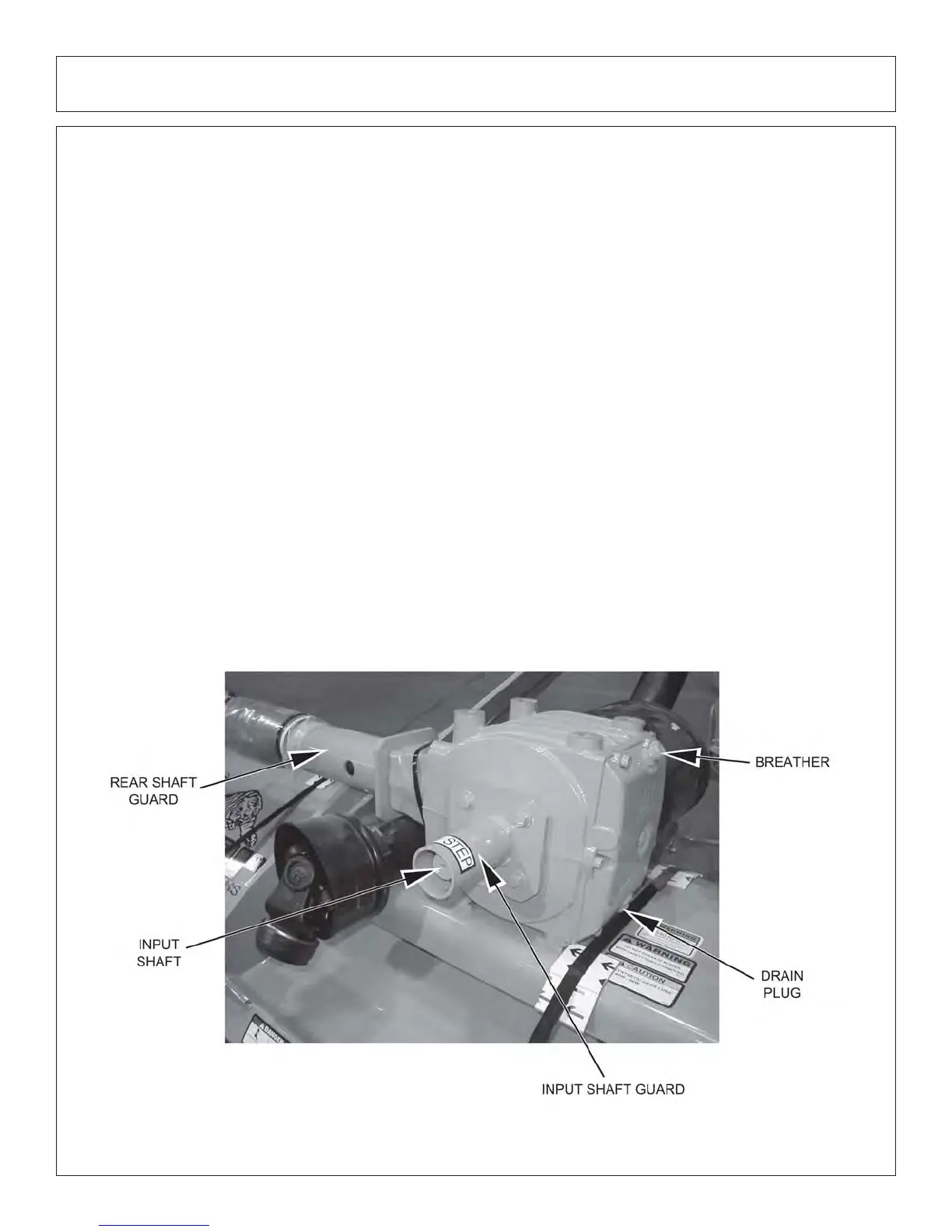 Disconnect the P.T.O. drive shaft from the right angle gear box. Remove the gear box