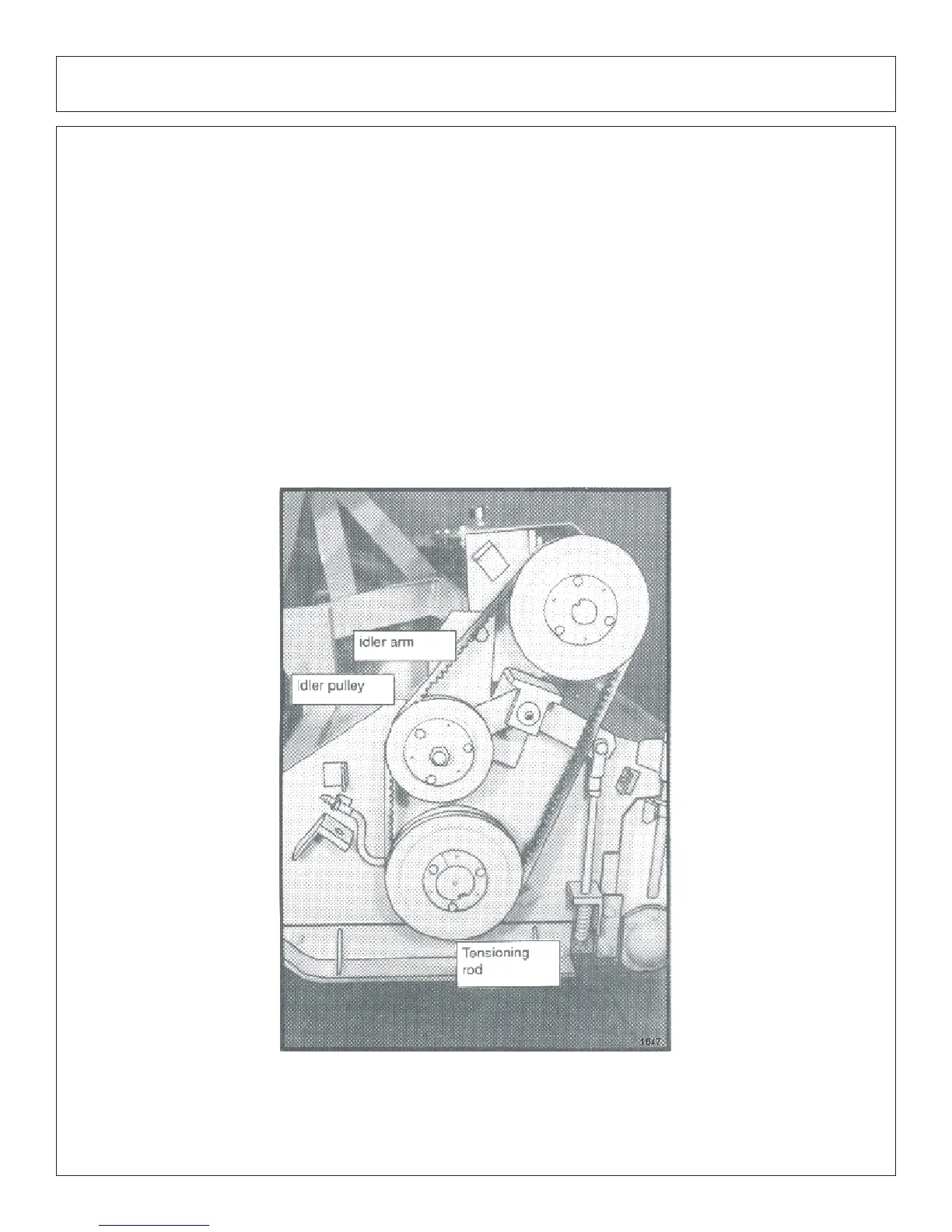 Tighten the adjusting nuts for the idler arm tensioner as shown previously in the