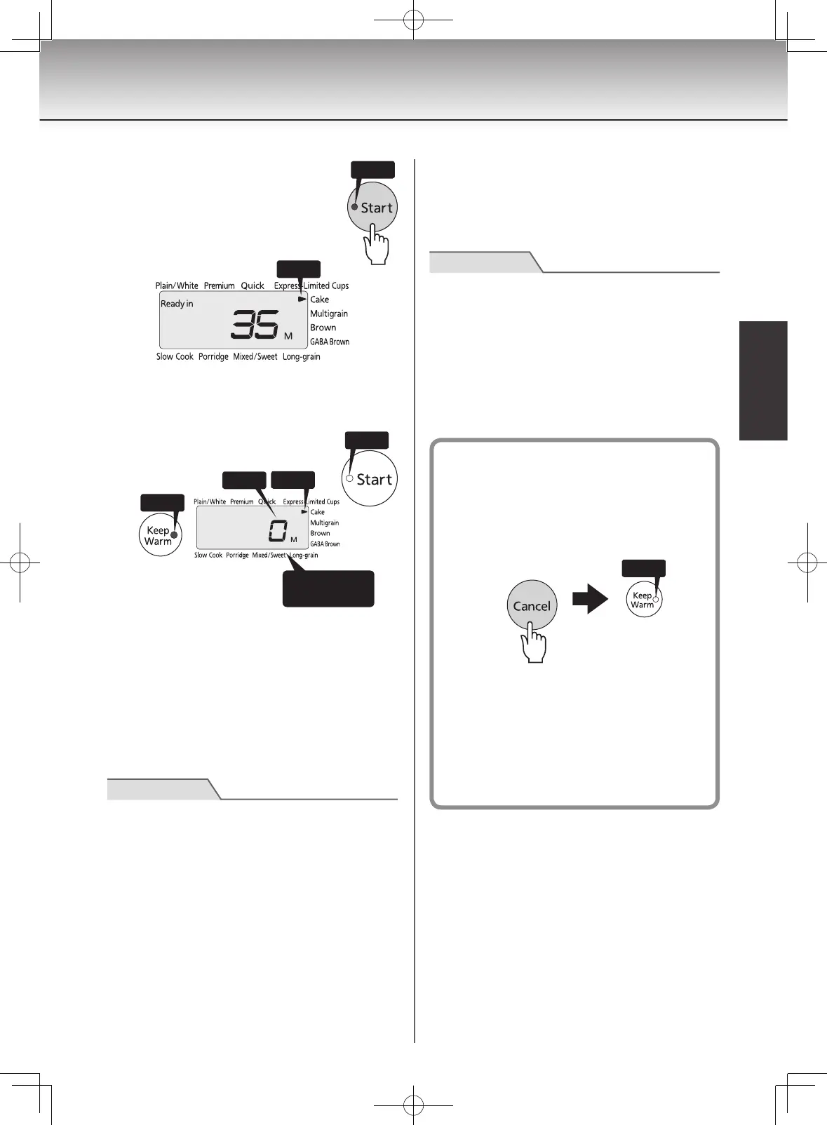 témoin Keep Warm clignotant et appuyez sur