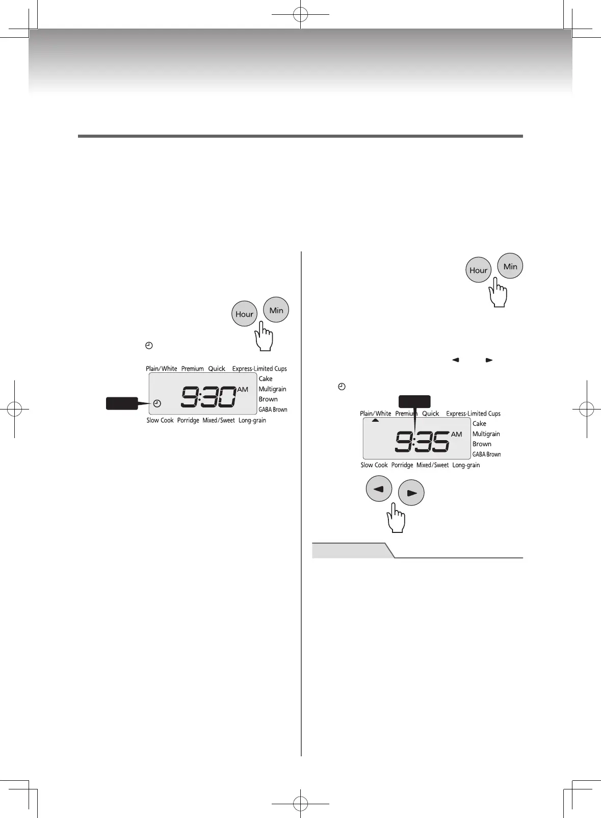 • When the “Cake”, “Slow Cook”, or “Porridge” menu is selected