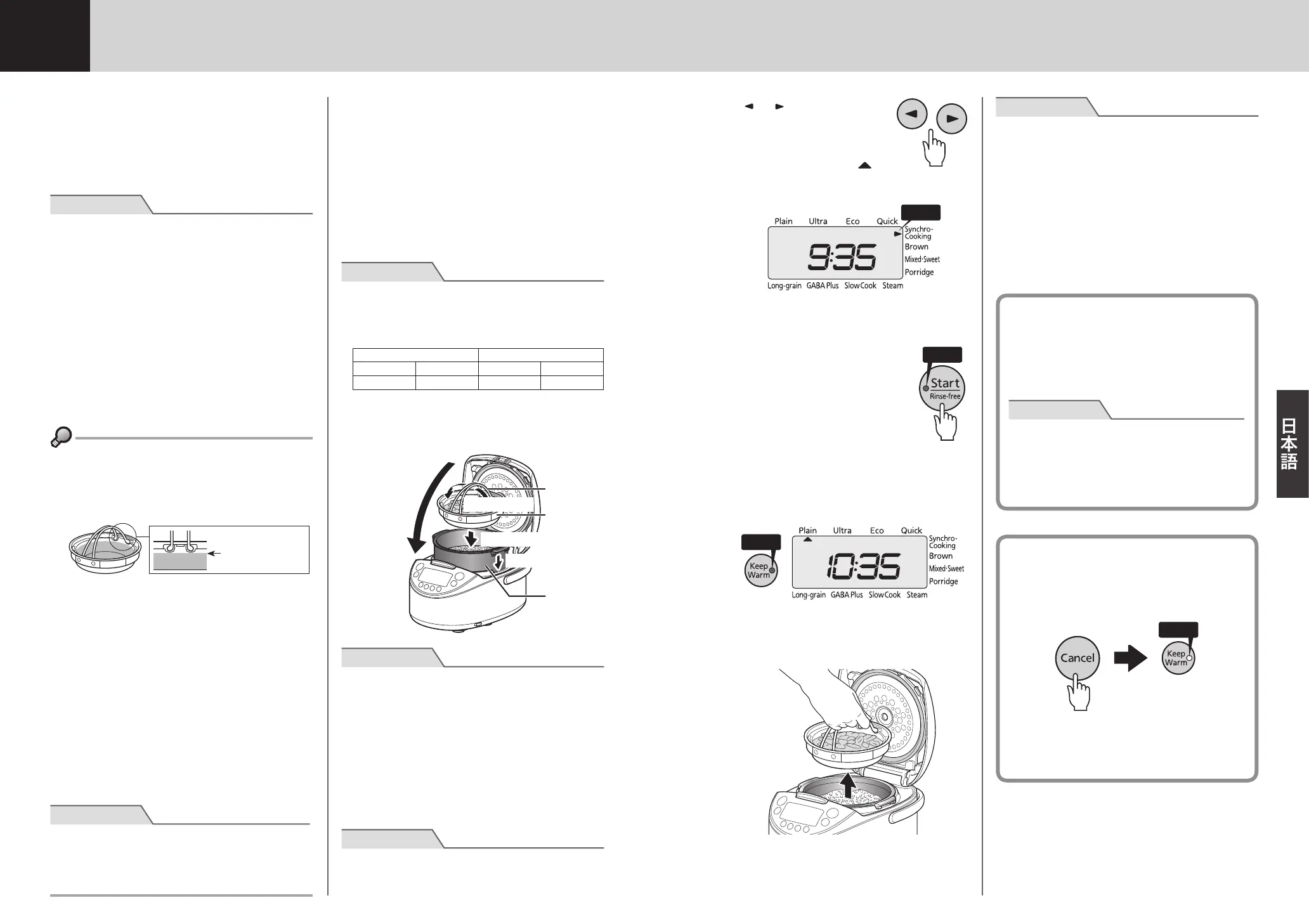 ます。ごはんを炊かずに、内なべに水を入れて調理