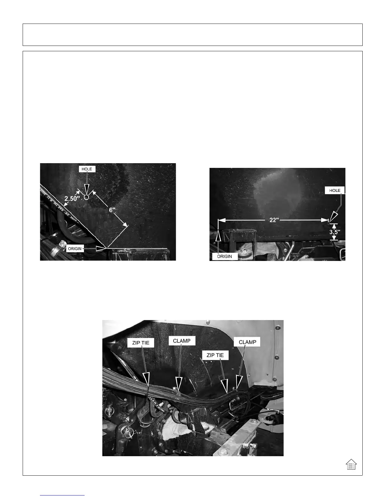 one hole for each clamp. Use the lower rear corner of the wheel well as an origin for