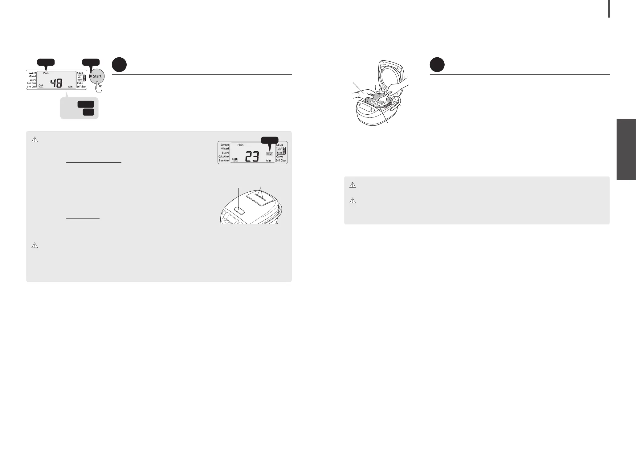 * 如果先按[Cancel],会在中途停止煮饭。如果不换掉内锅中的米和水就重新煮饭,会导致煮到