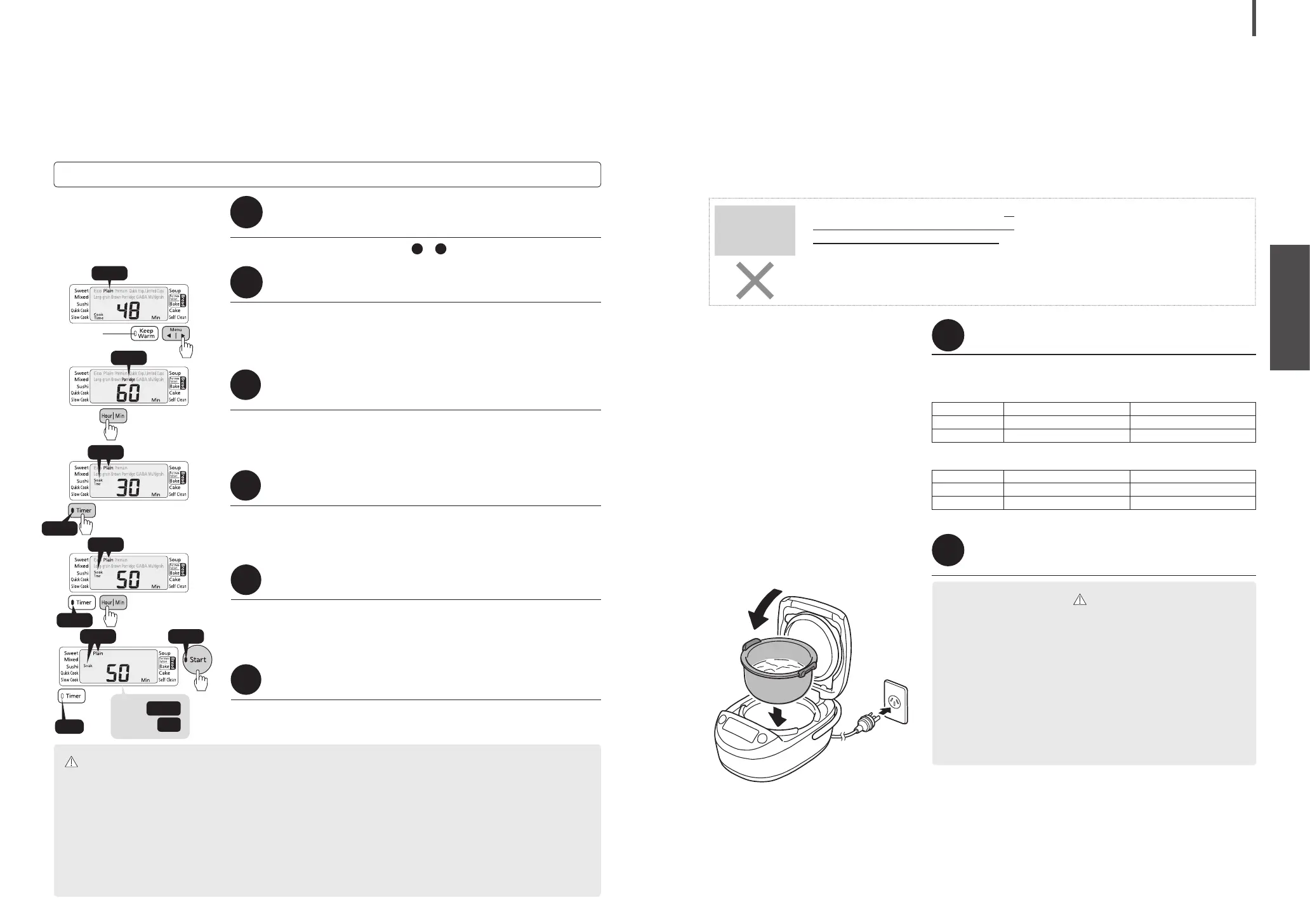 例 :如果将“Soak Timer”设定为50分钟,就会在50分钟后开始煮饭。