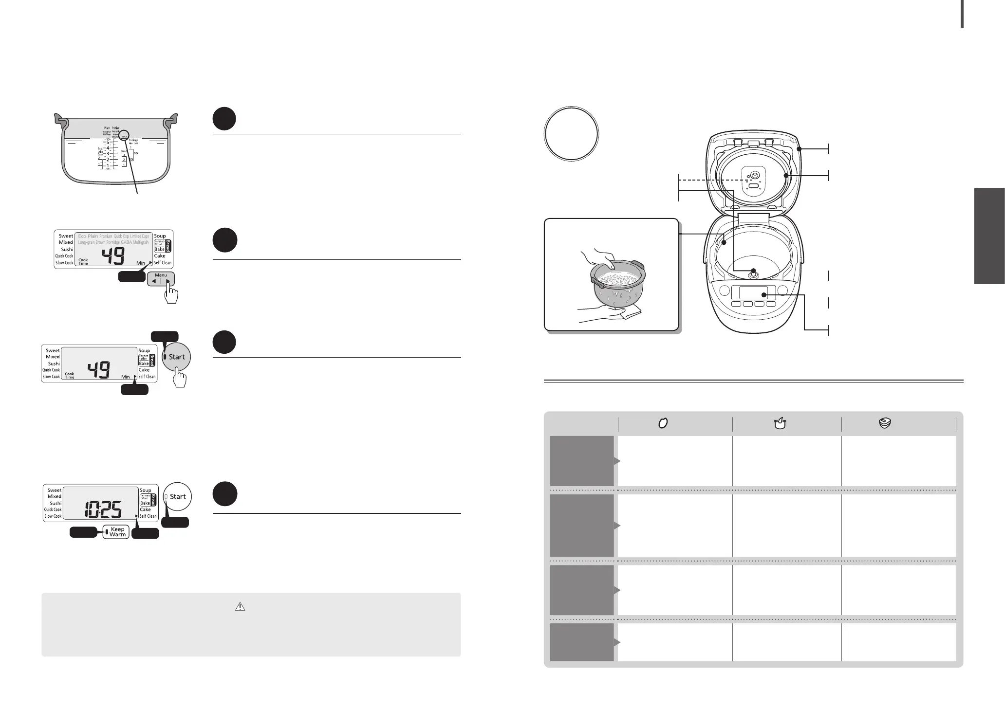 内 锅 装 入 本 体 内 ,将 电 源 插 头 插 入 插 座 。→P.77