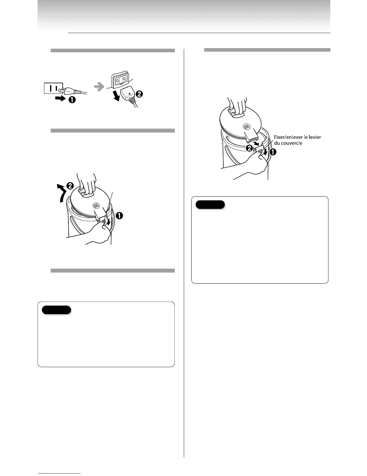 couvercle, ouvrir et retirer le couvercle en tirant sur le