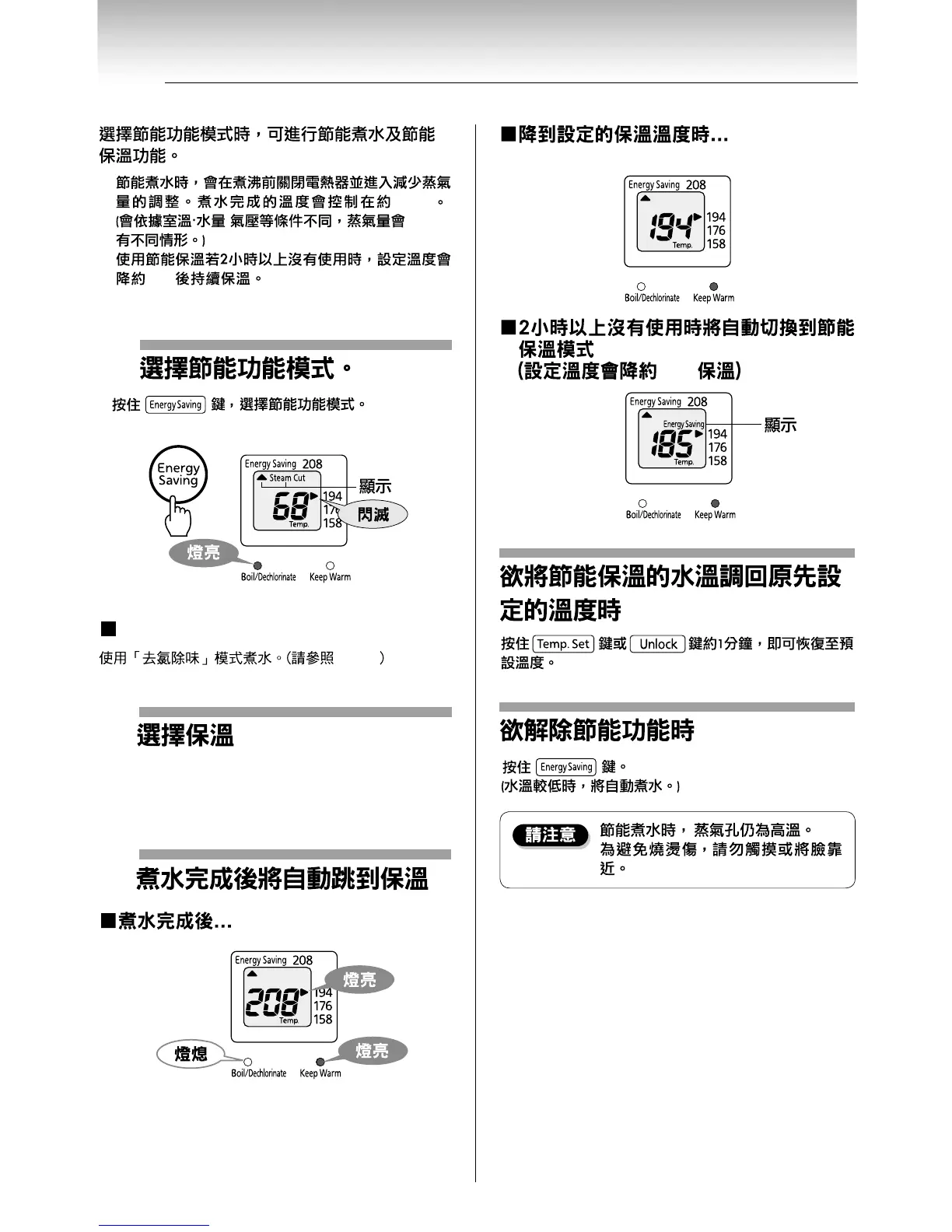 (例如設定 208 保溫時,節能保溫會變成 203 持續