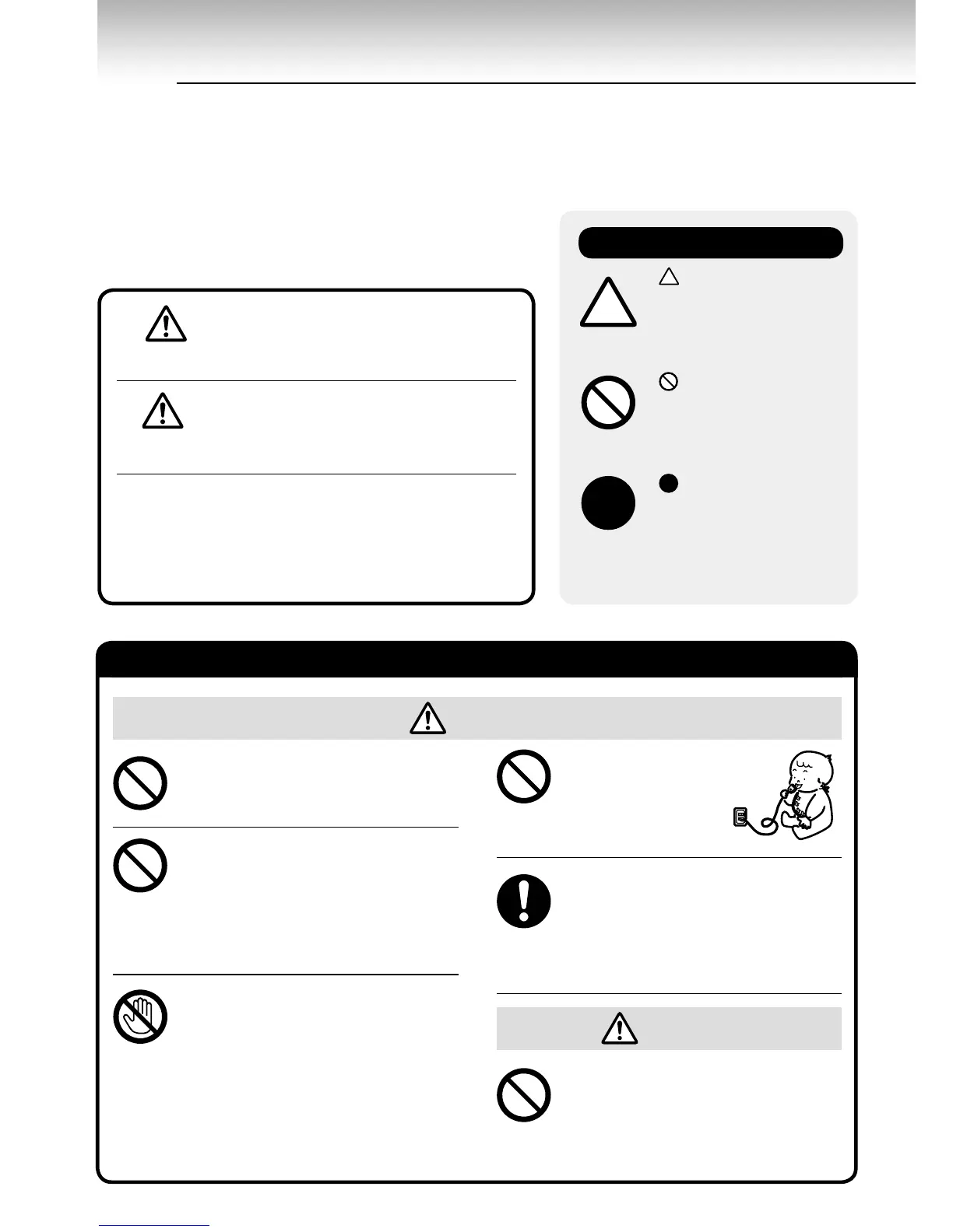 ※ 아래에 설명된 경고와 주의는 사용하시는 분이나 다른 사람에 대한 신체적 위해나 재산상의