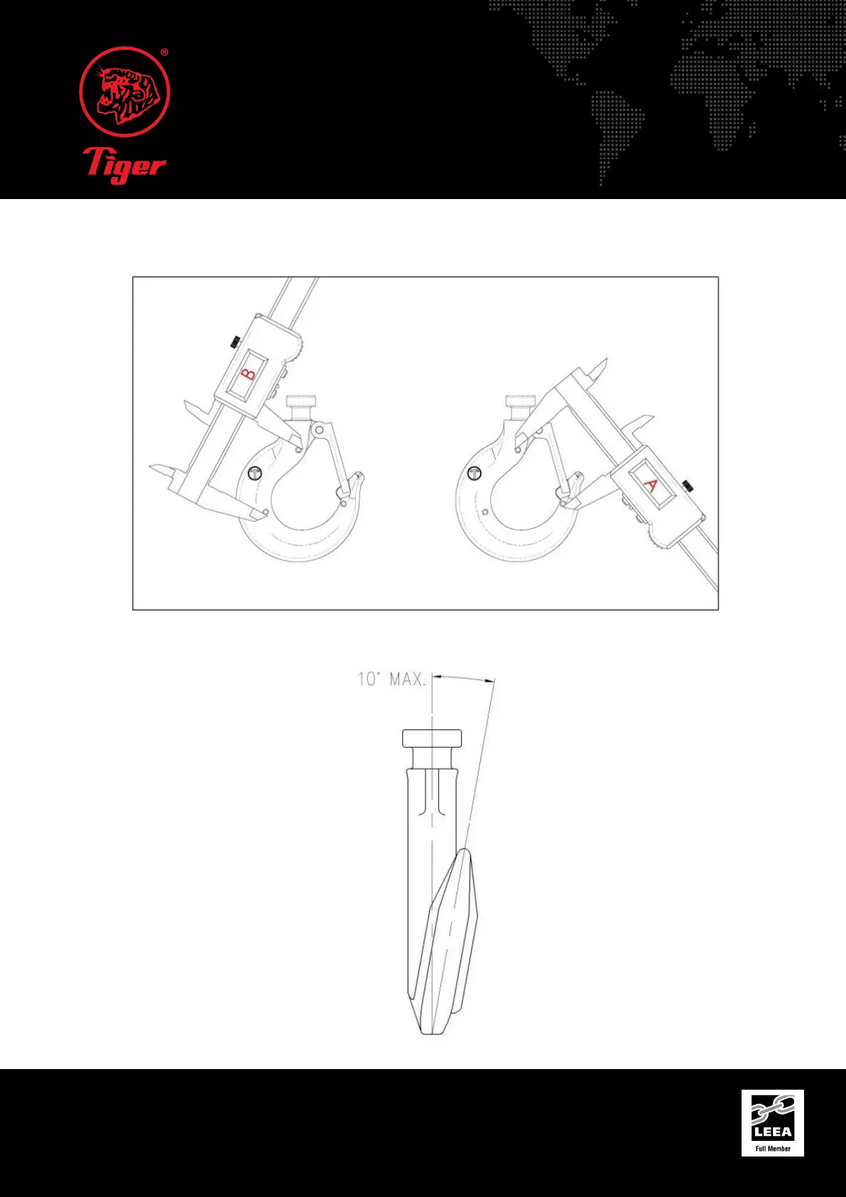 In addition to the above checks, more than a 10° twist from the plane of hook is enough to warrant replacement of the hook.