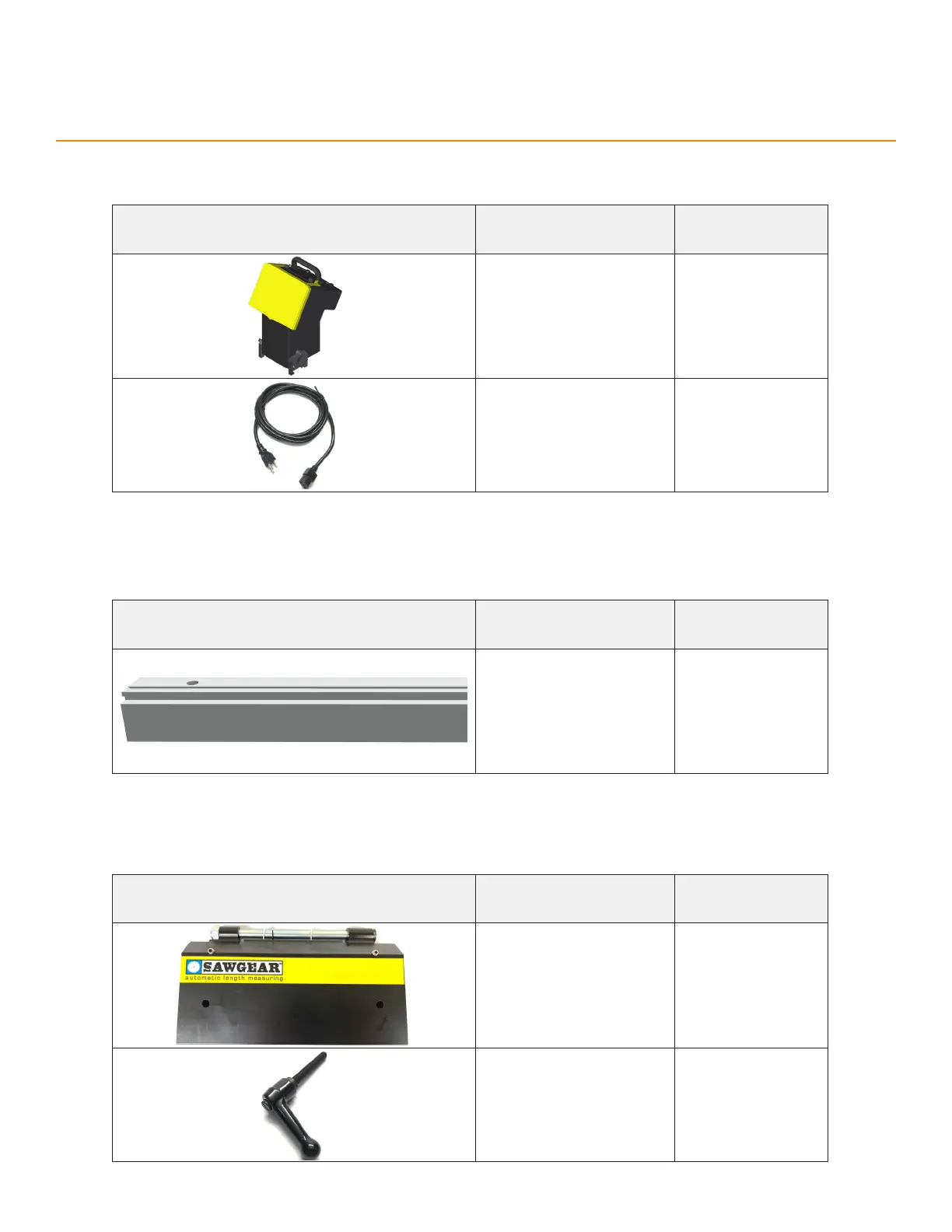 TigerStop SawGear Touch - Parts Inventory; Power Head Touch; Saw Gear Beam; Flip-Away Stop Assembly