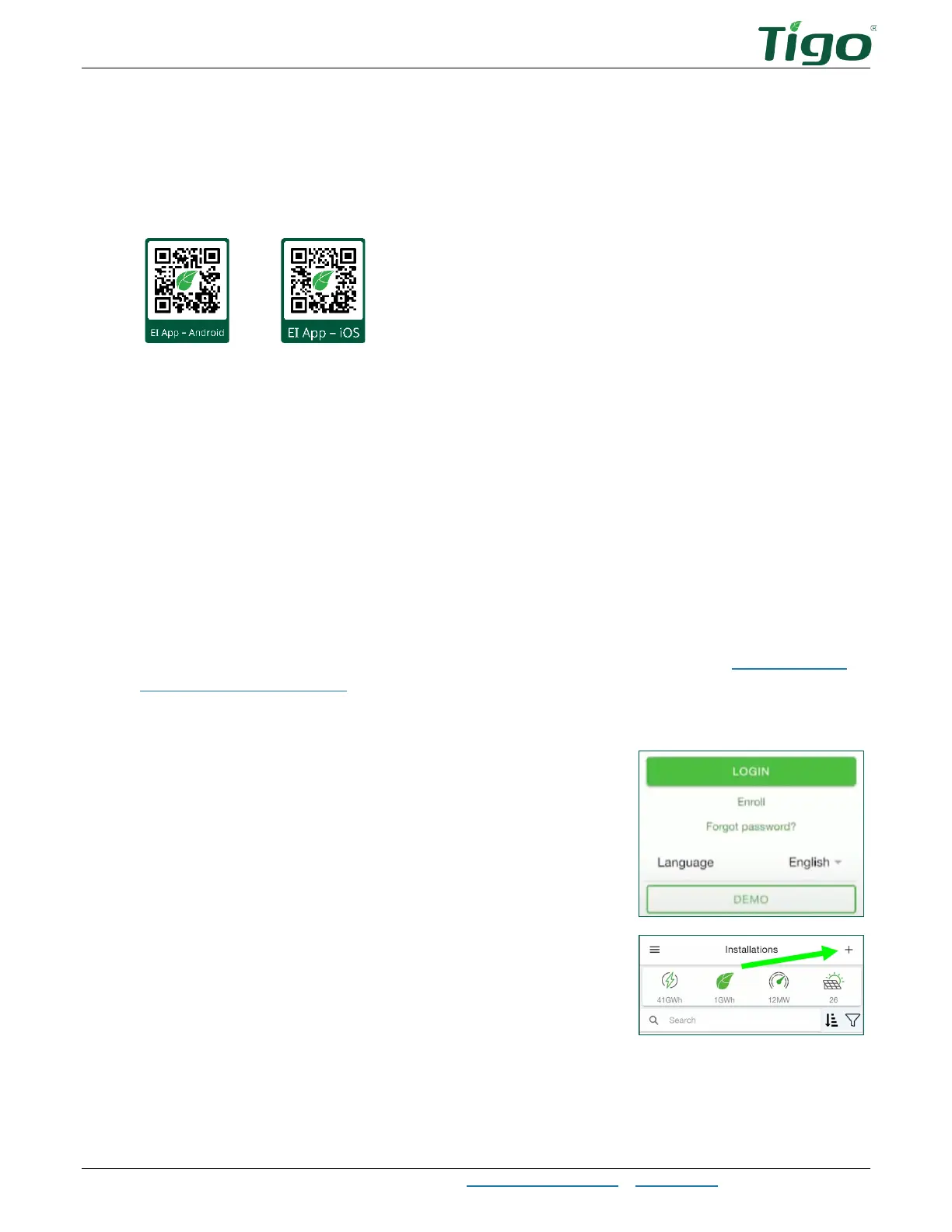 The Tigo EI app for Android and iOS mobile devices enables fast system commissioning and