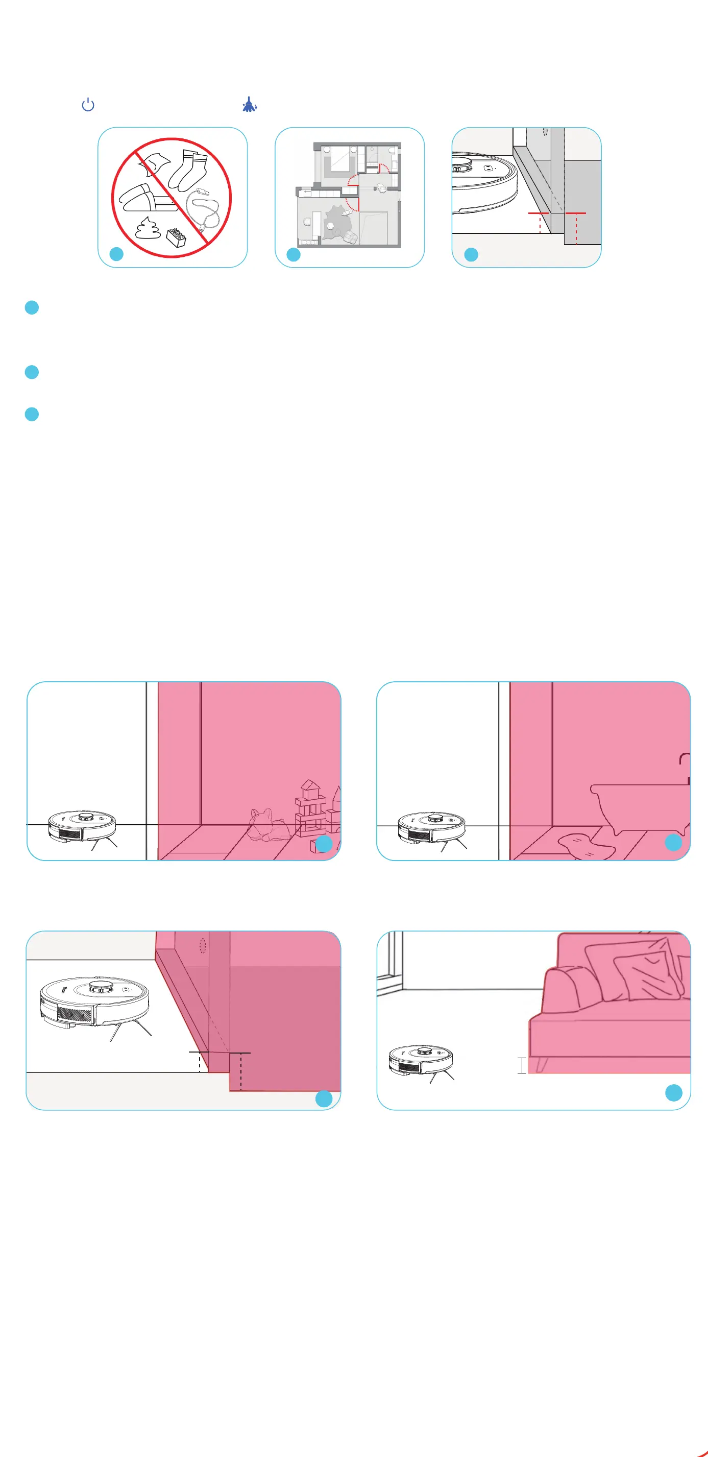 Please remove any objects from the floor that may entangle the robot vacuum, such as pet
