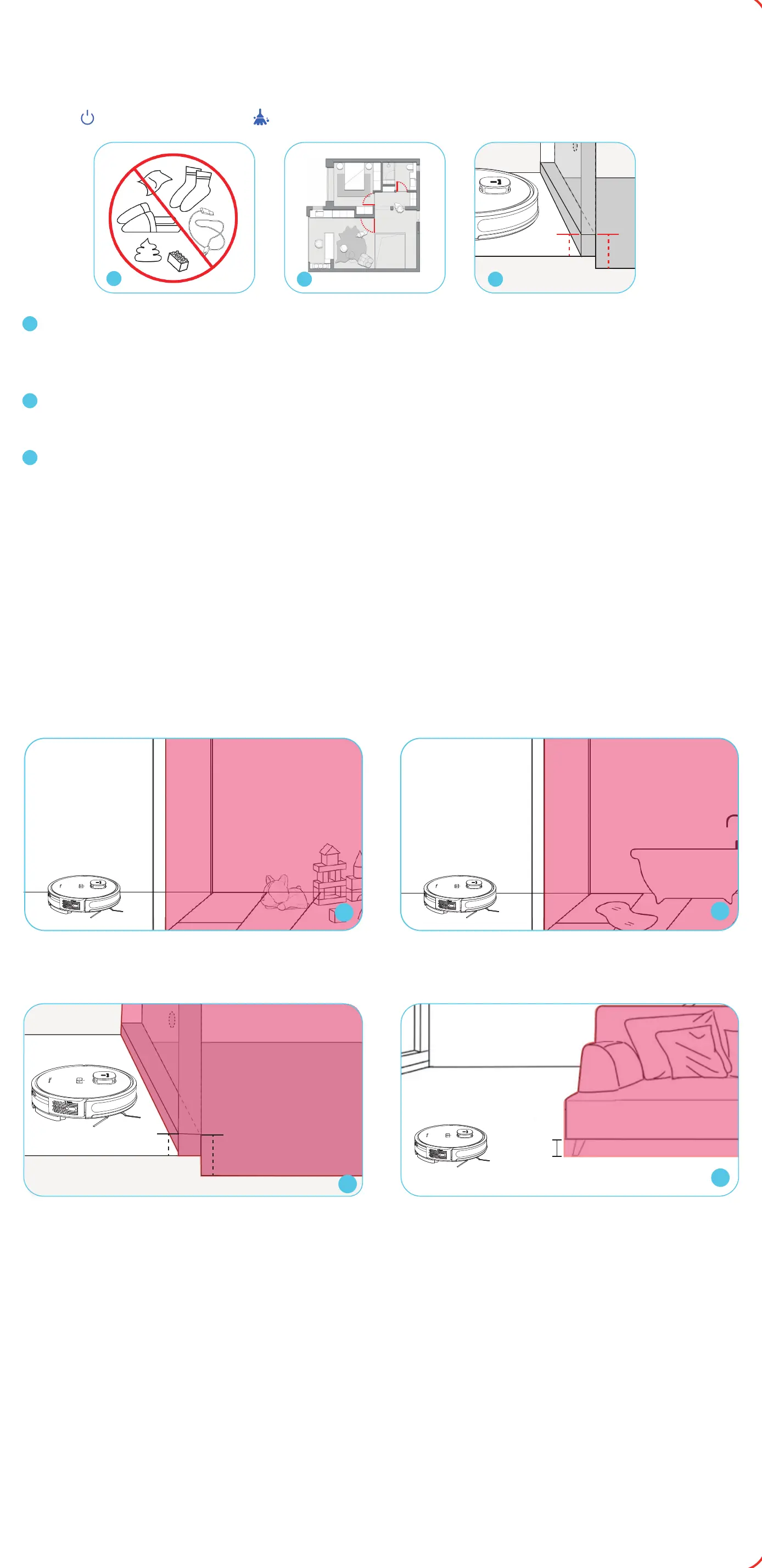 Please remove any objects from the floor that may entangle the robot vacuum, such as pet waste,