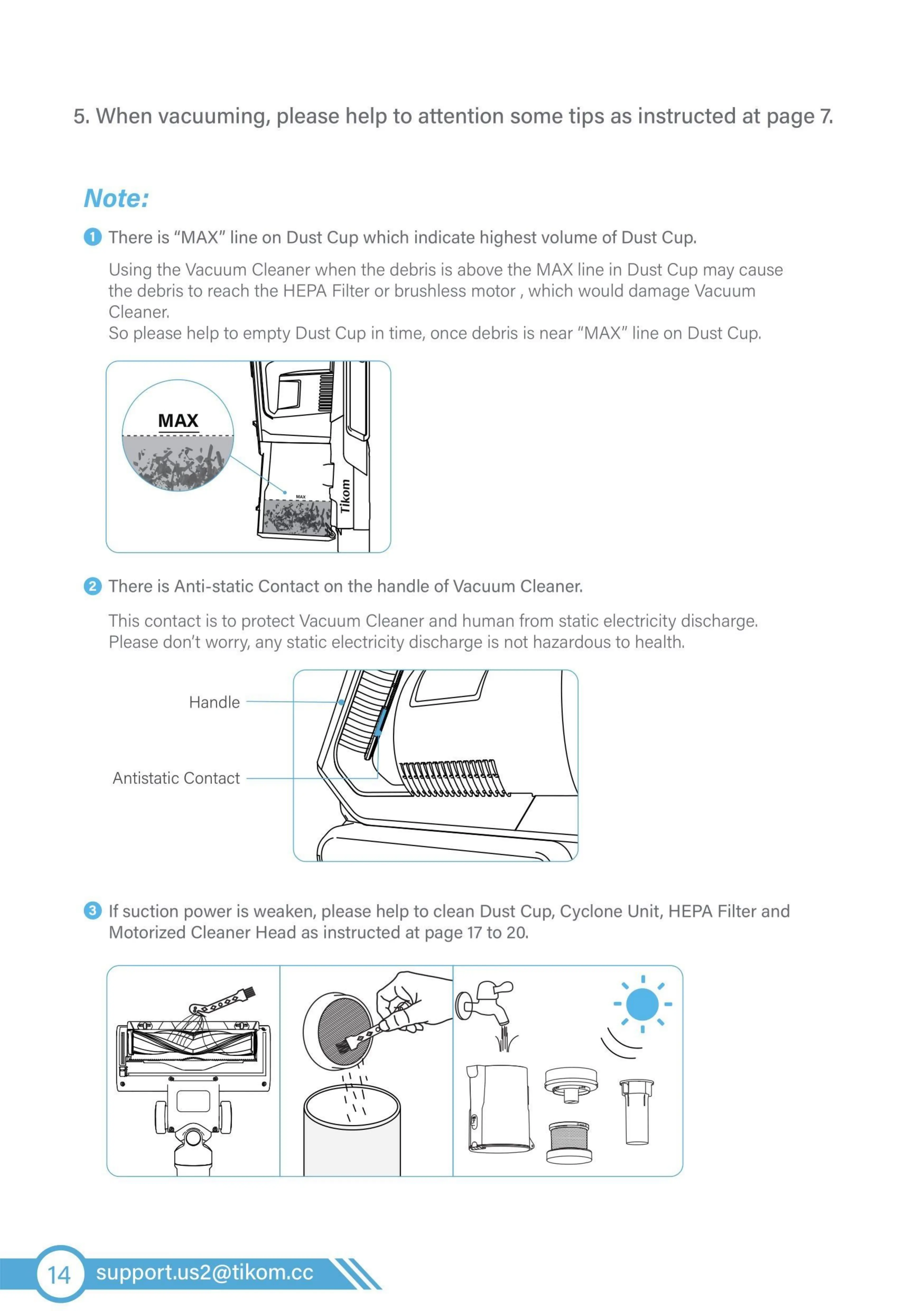 5. When vacuuming, please help to attention some tips as instructed at page 7.
