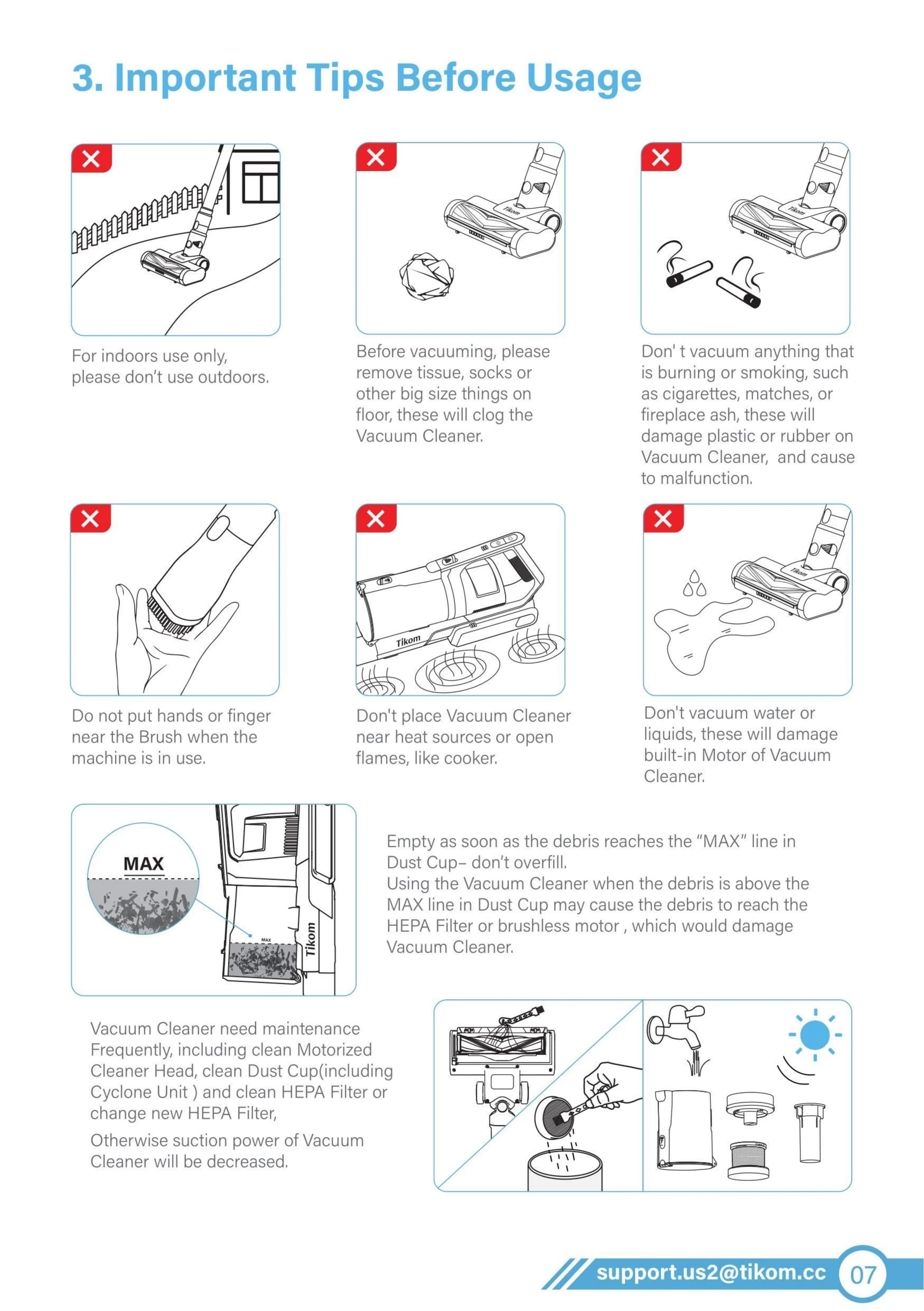 Don't place Vacuum Cleaner