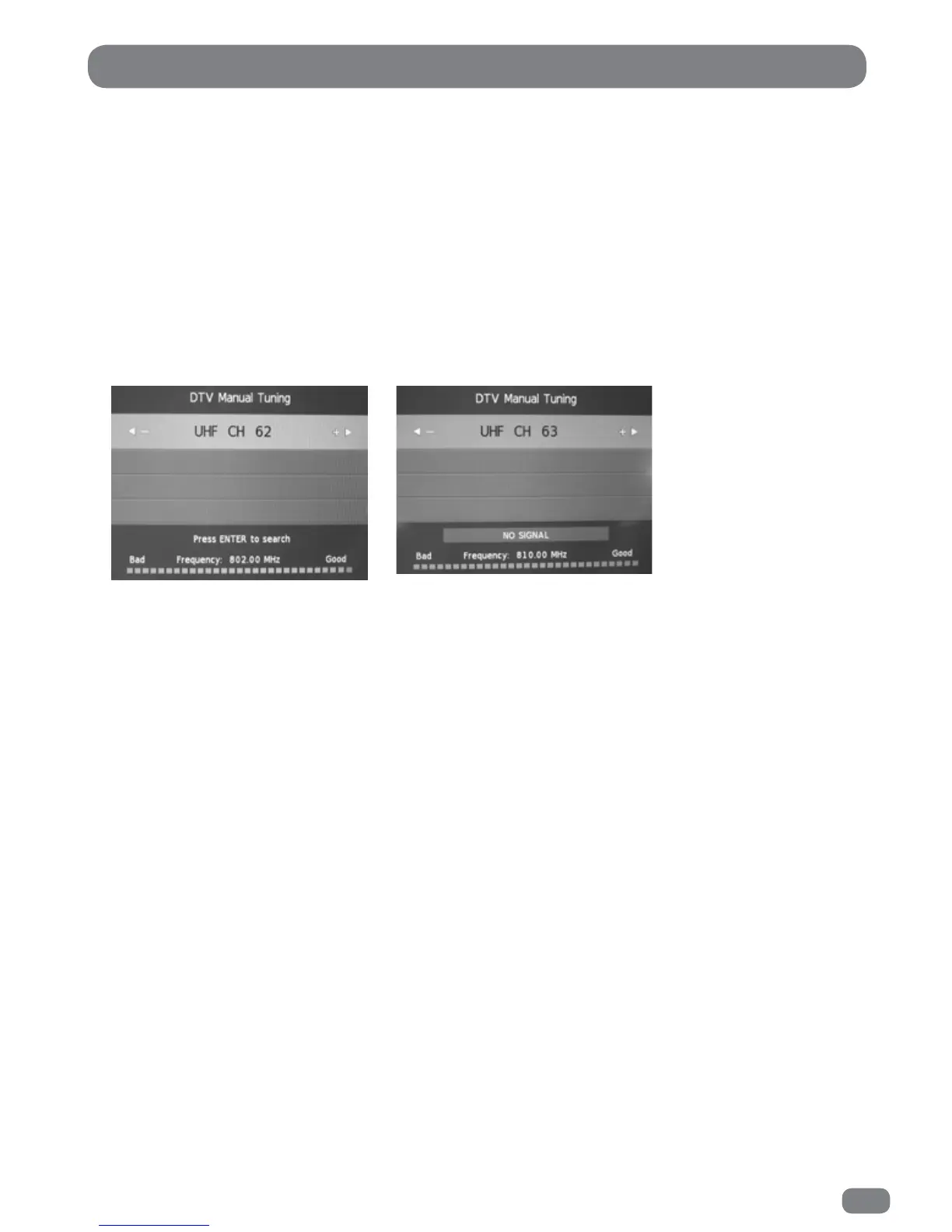 The DTV Manual Tuning menu will show if a signal is being received on the selected channel.