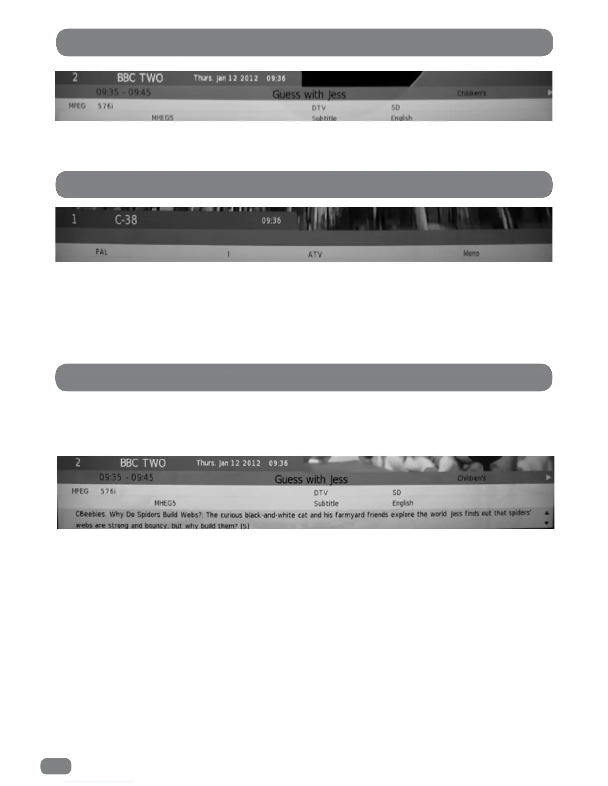 More detailed information about the current programme can be seen at any time by pressing the INFO button.
