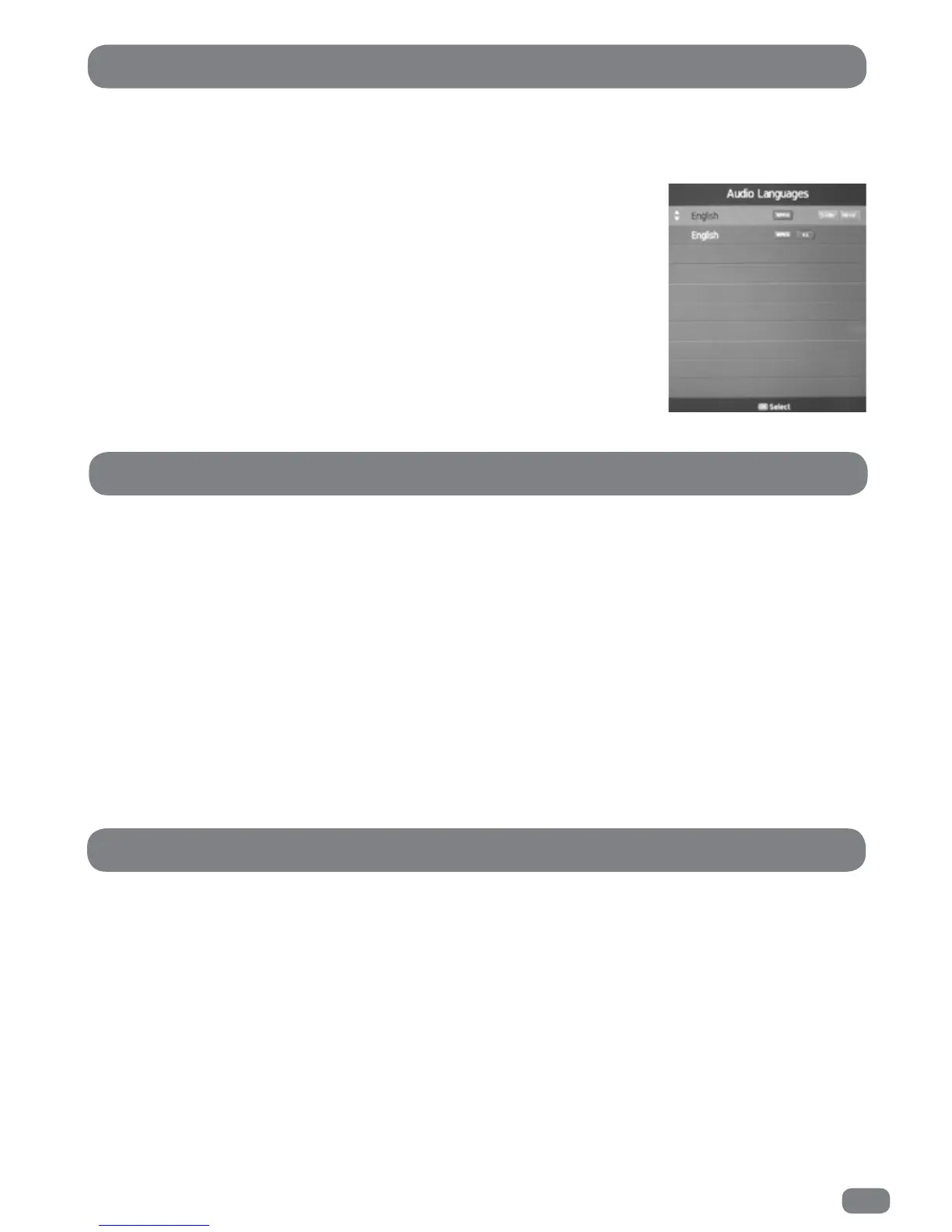 impaired (V.I.). The Audio Languages menu allows available languages to be selected and broadcasts with