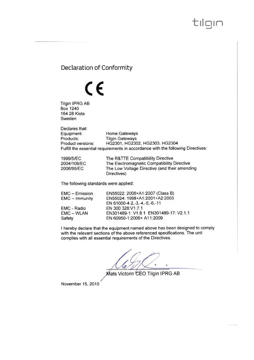 Tilgin HG2300 series Quick Guide