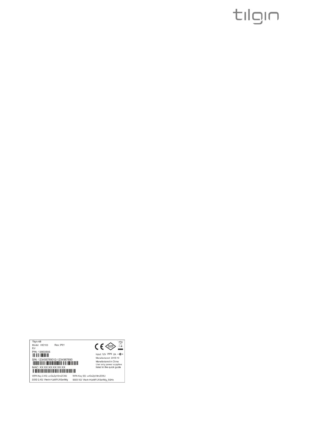 SSID = Tilgin -<12 random characters>