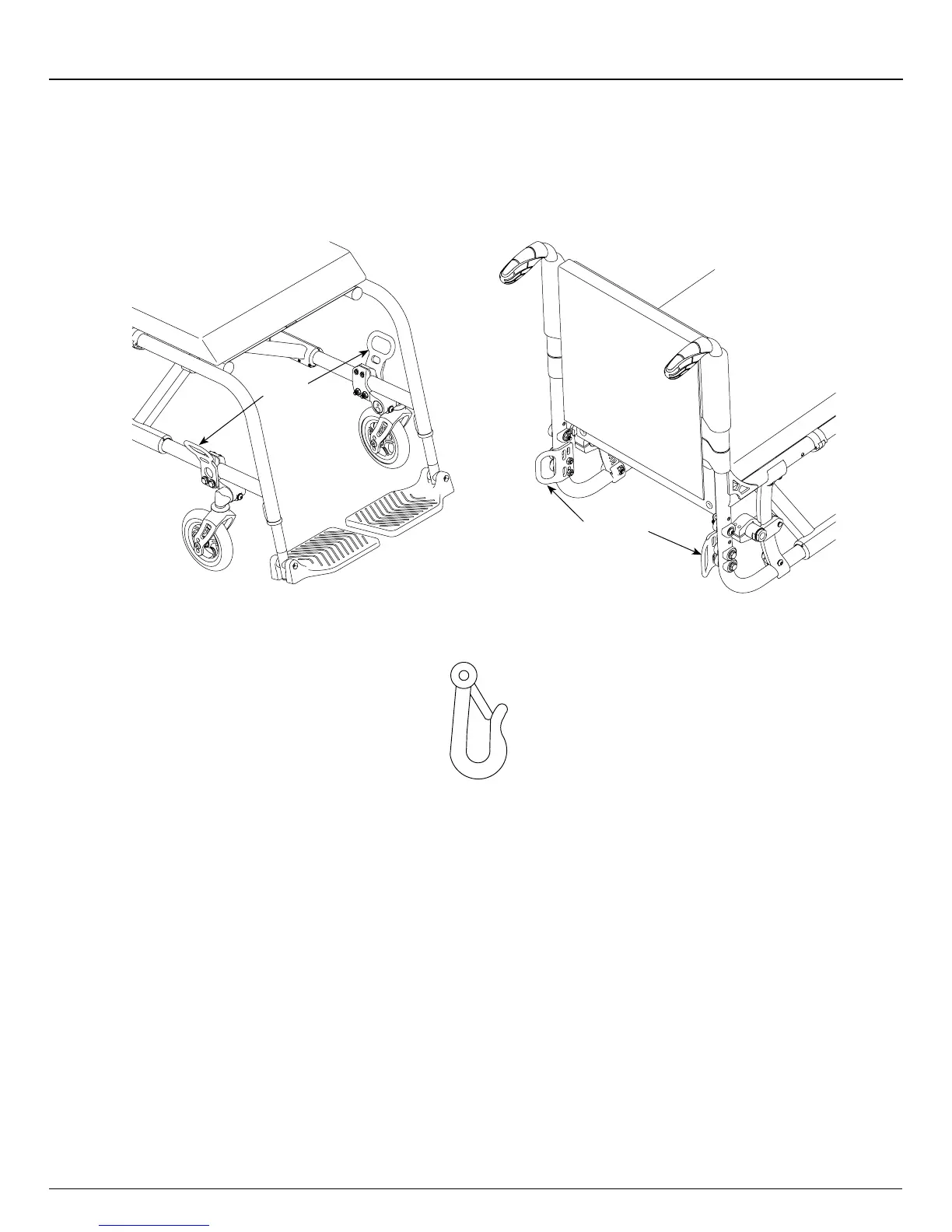 6. Carefully inspect each of the four Tie-Down brackets to ensure that they are properly secured to the wheelchair.