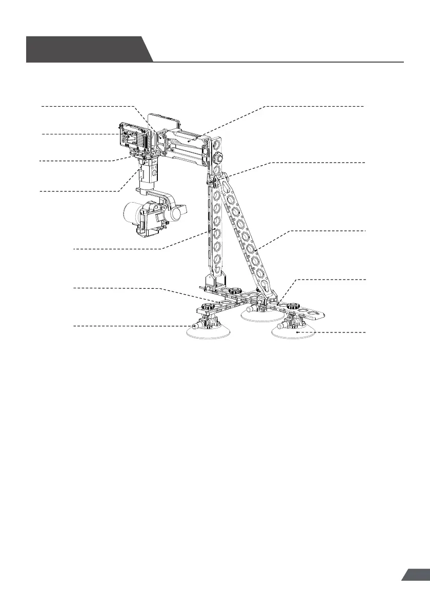 如影 S 车拍轻便支架的组成包括三个部分,分别是载重吸盘、多功能滑板支撑组合、减震系统。这套系统可以根据具体的