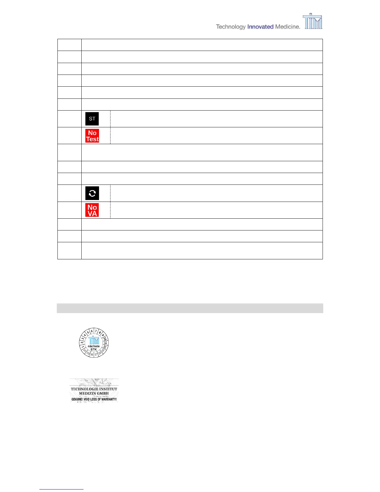 Note: For more information about further symbols used on screens please refer to this IFU