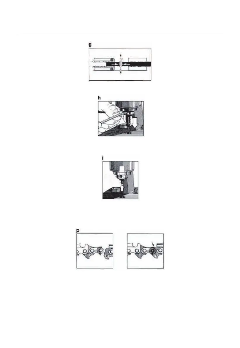 • Insert the chain portion to be broken into the slot of the adjustable anvil (figure j). Tighten the