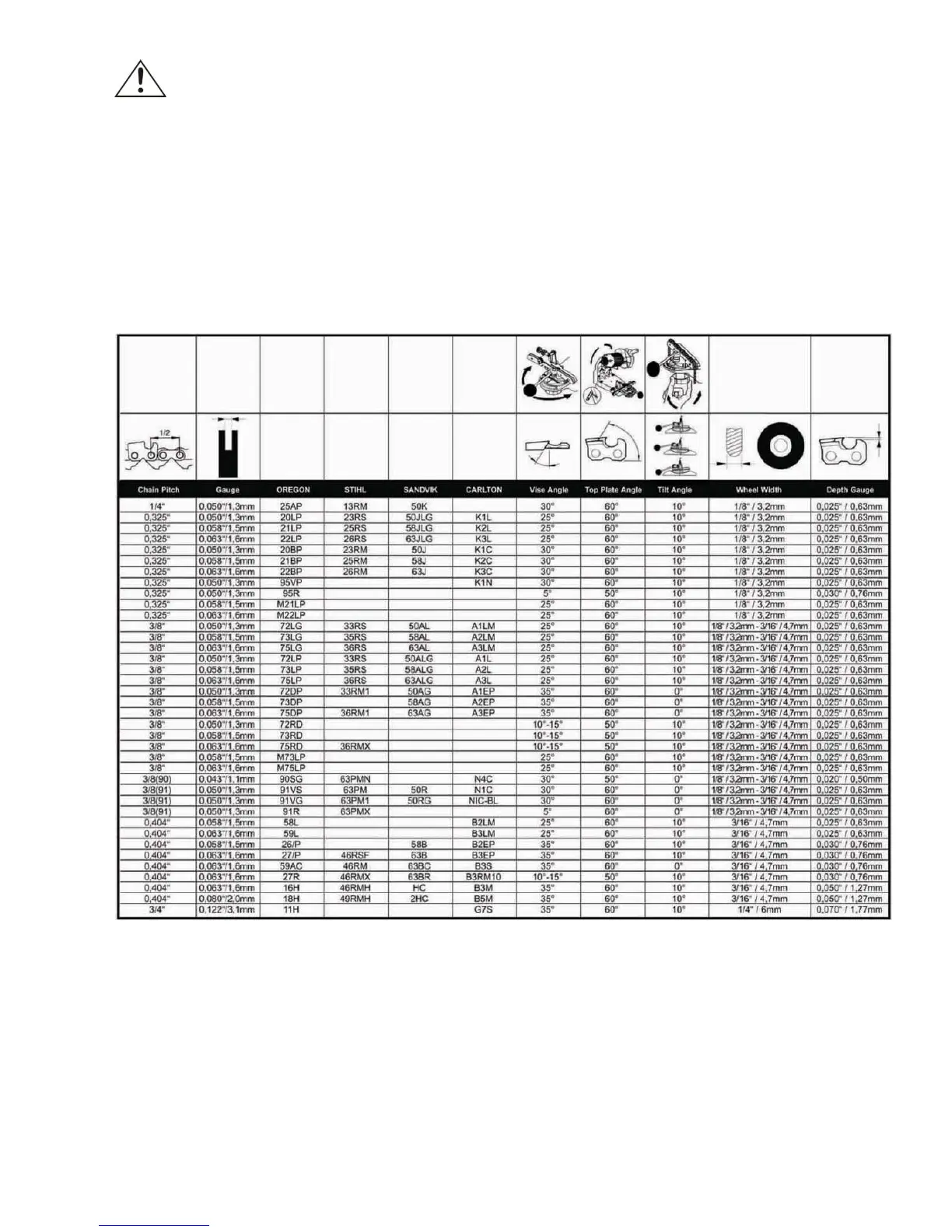 NOTE: Do not use a lot of pressure when sharpening the teeth or run the grinding wheel on the teeth