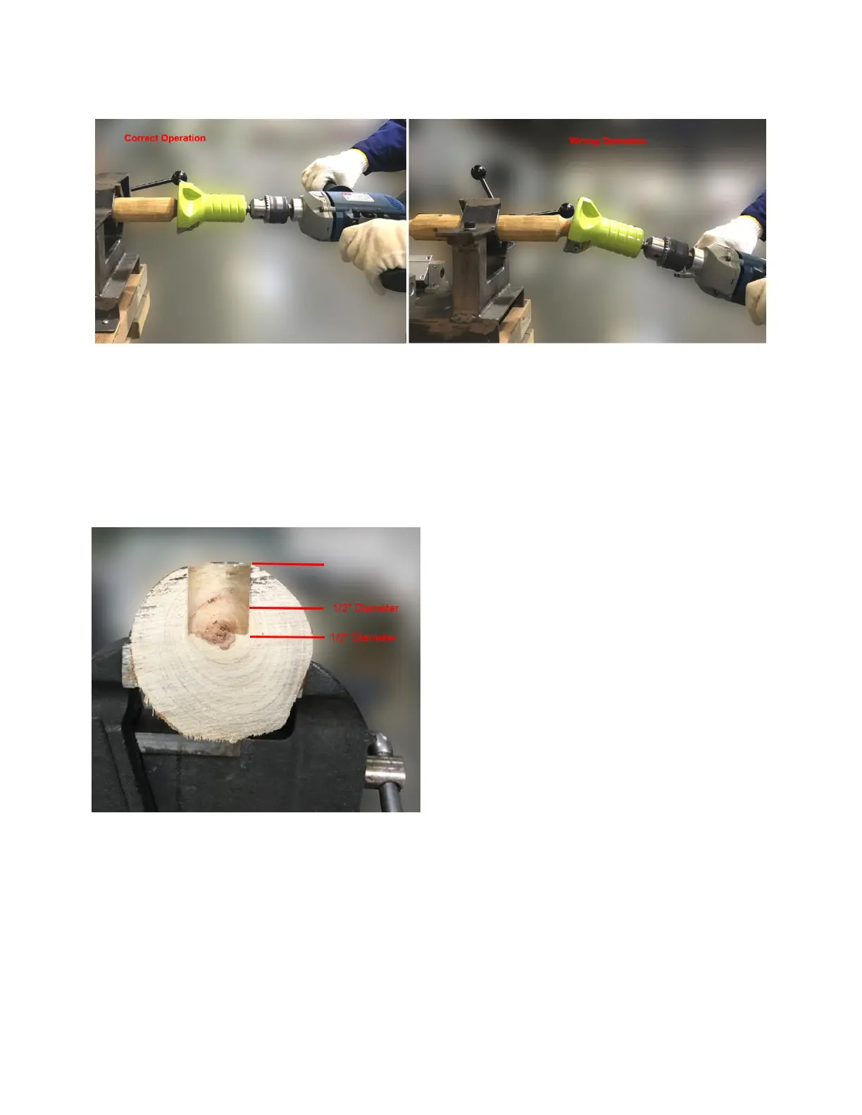 you’re working with. You should never drill deeper than ½ of the log diameter. See the example shown