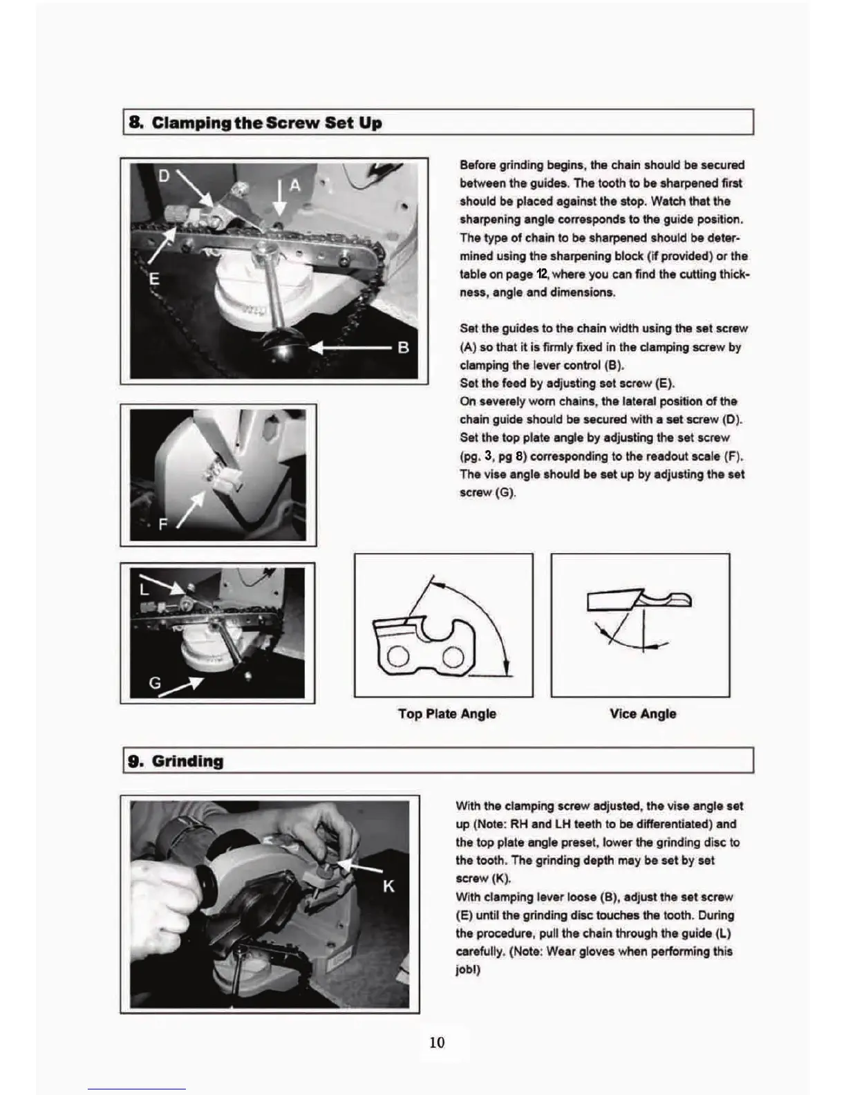 Timber Tuff CS-BWM - Chain Sharpening Setup and Grinding; Chain Clamping and Angle Adjustment; Grinding Process Steps