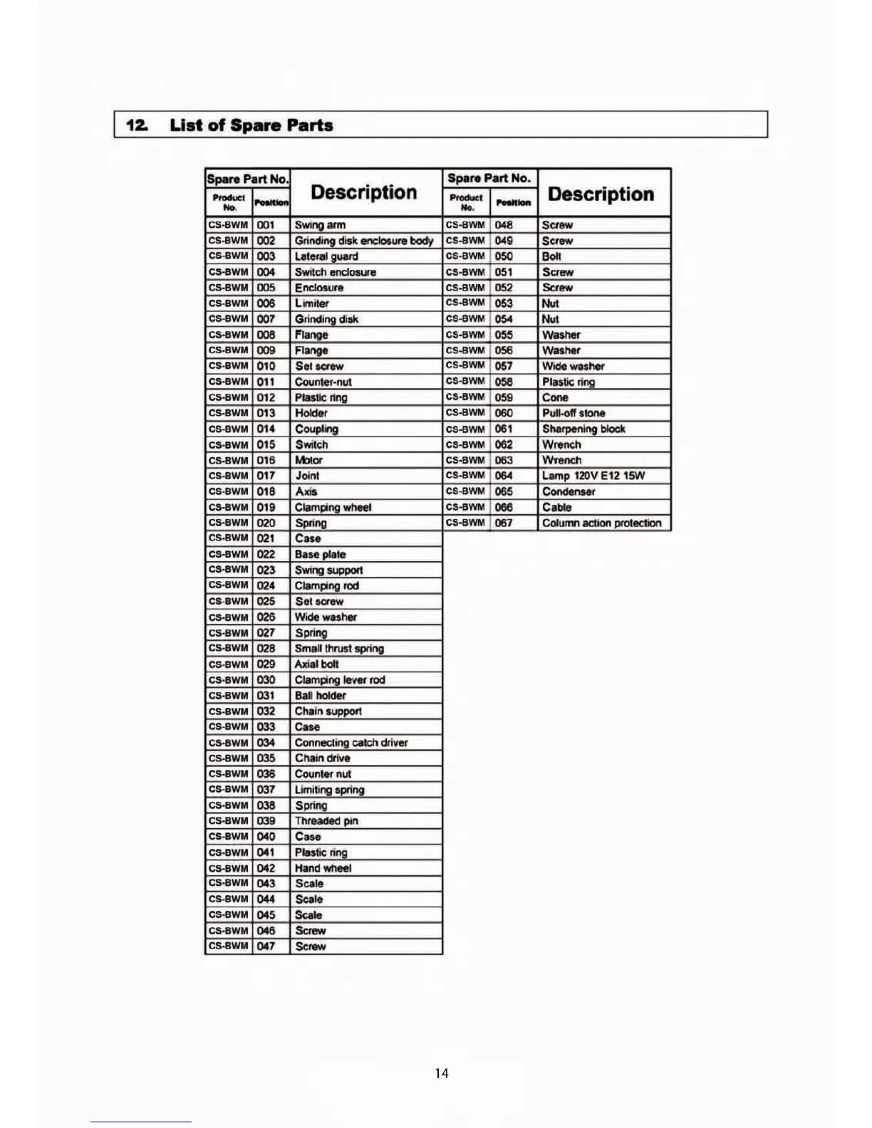 Timber Tuff CS-BWM - Chain Sharpener Spare Parts Catalog